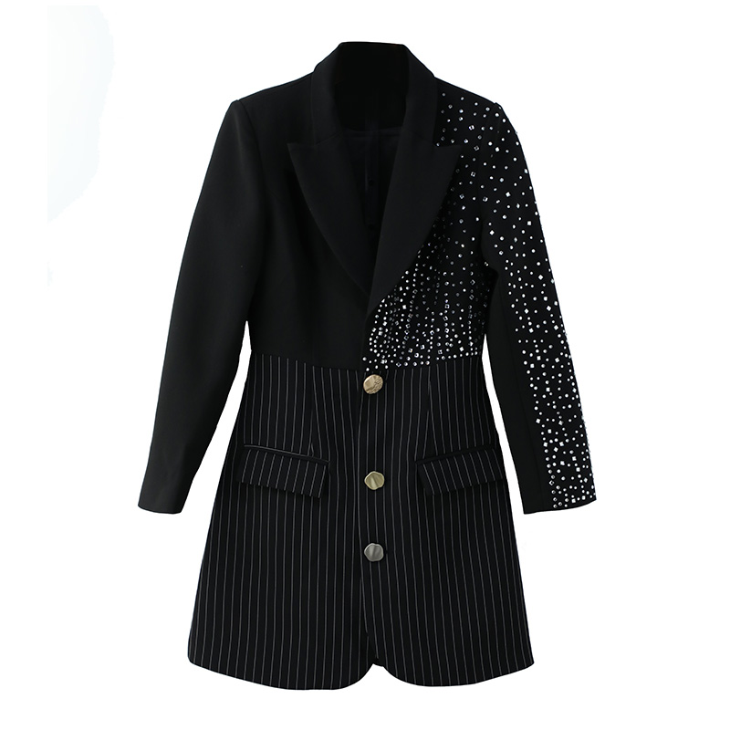 中長款半身條紋西裝女2018年秋冬裝新款時尚修身西裝領西服大衣