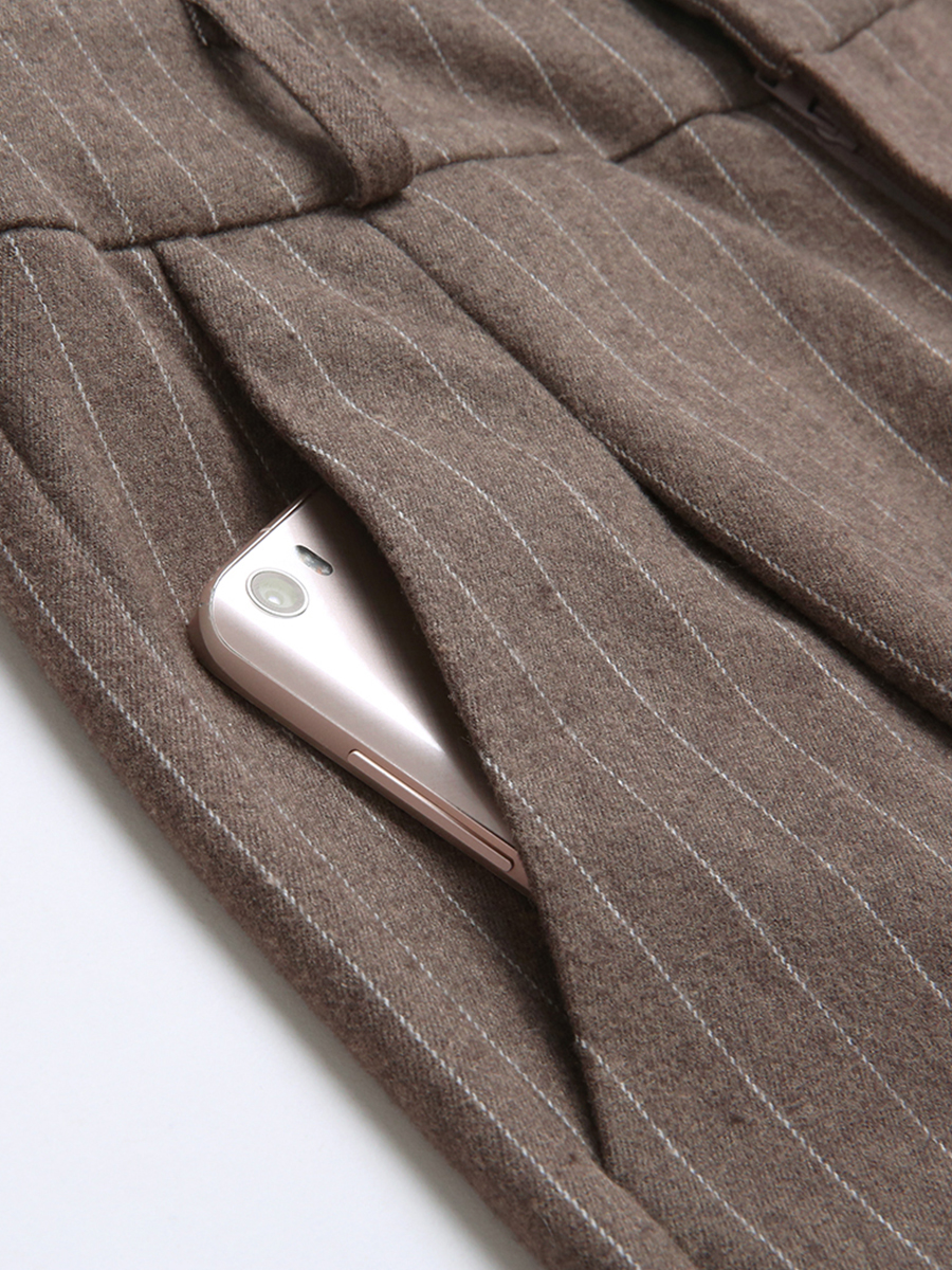 MG小象褲子女秋冬2018新款寬松顯瘦chic直筒褲復古條紋西裝褲子潮