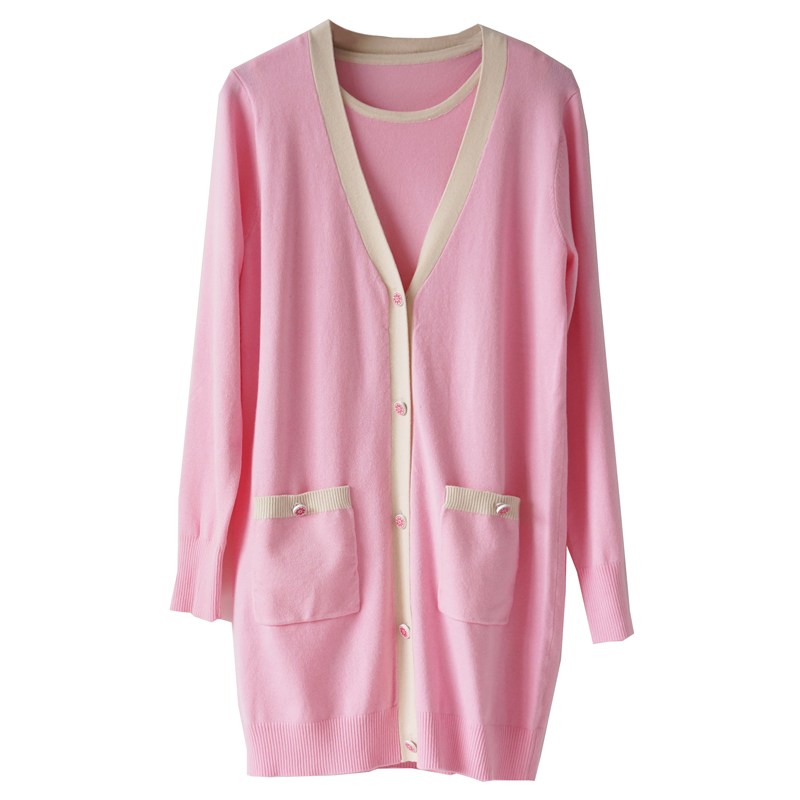 淑女氣質2018春季新款韓版修身針織套裝無袖連衣裙長袖開衫兩件套