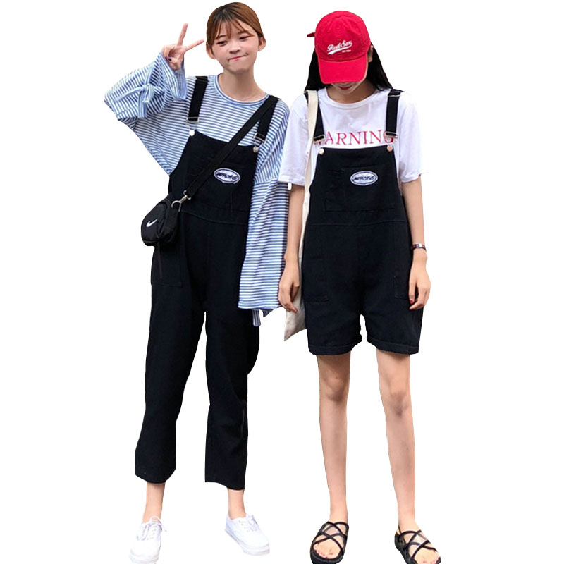 / 夏季女裝韓版寬松顯瘦工裝背帶連體褲休閑褲九分褲閨蜜闊腿褲短褲
