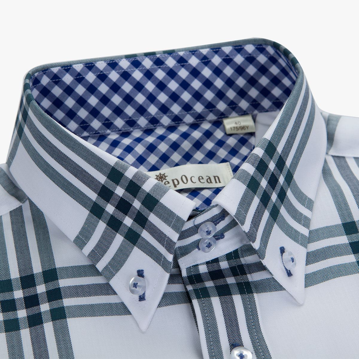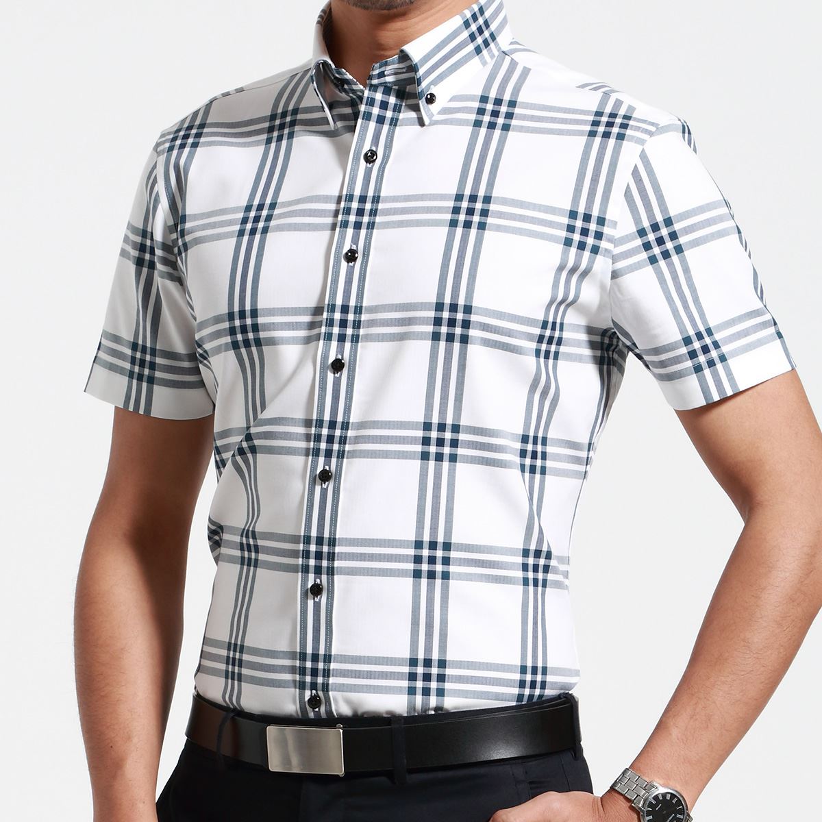 / 深海男式短袖襯衫韓版修身款大格子寸衫休閑純棉夏季透氣半袖襯衣