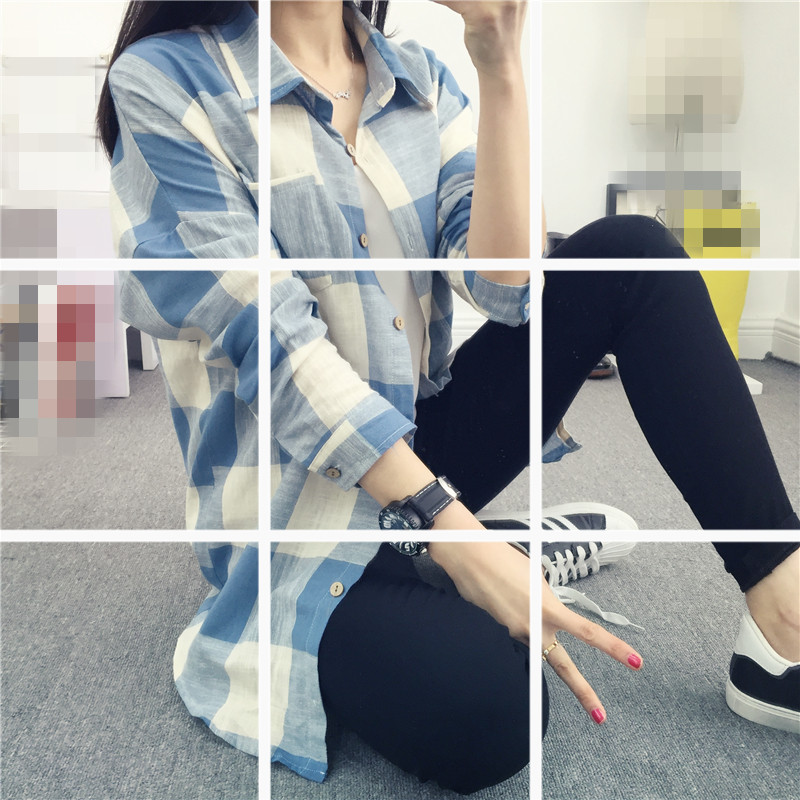 春秋裝格子襯衫女長袖棉麻上衣寬松女中長款休閑百搭韓范襯衣外穿