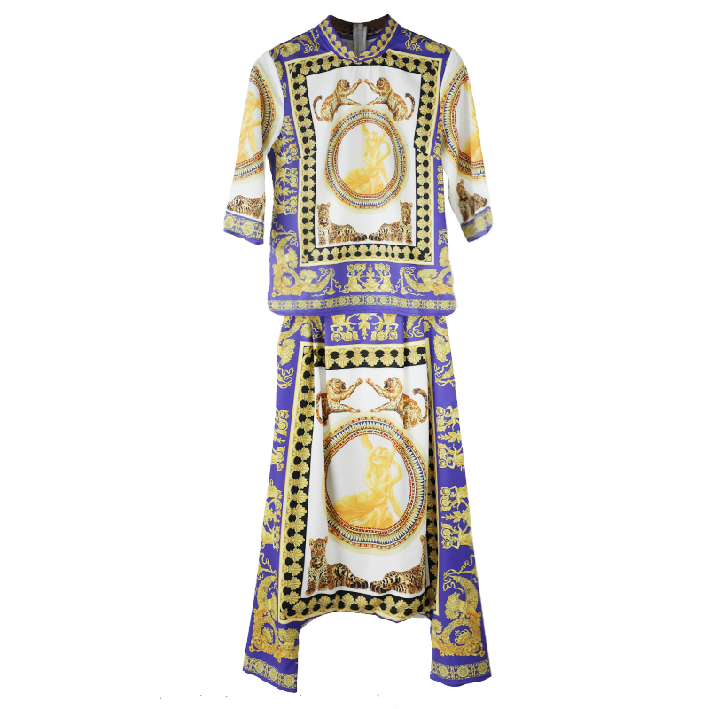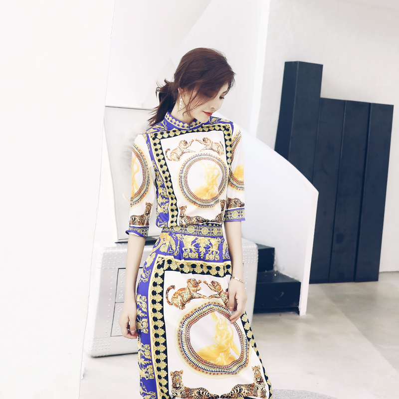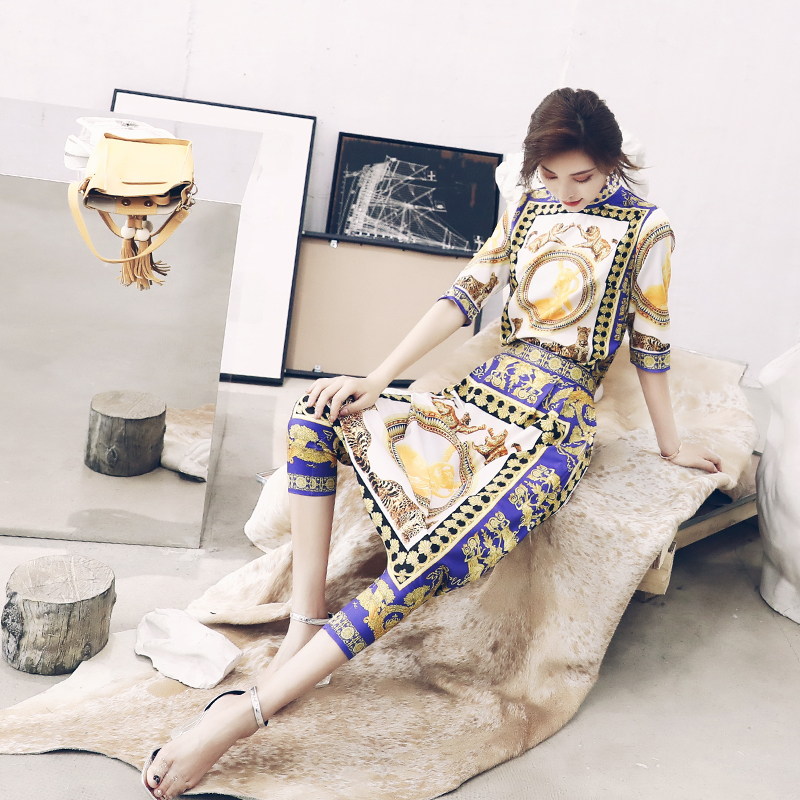 名媛氣質夏兩件套2018新款五分袖印花上衣裙褲時尚女裝chic套裝潮