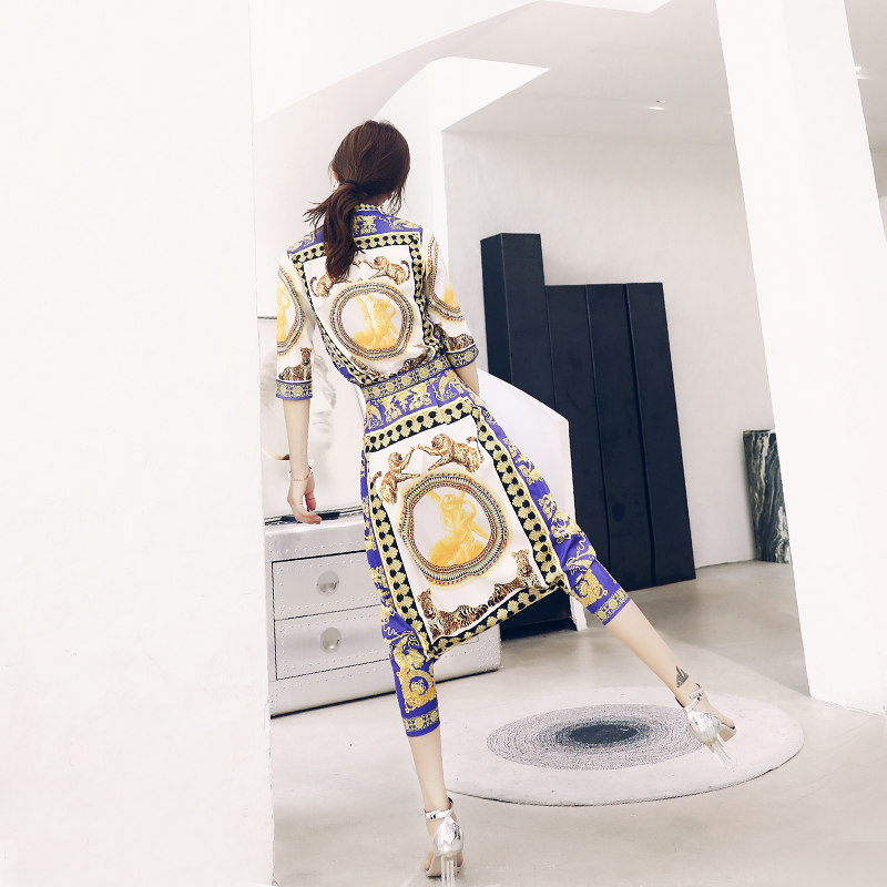/ 名媛氣質夏兩件套2018新款五分袖印花上衣裙褲時尚女裝chic套裝潮