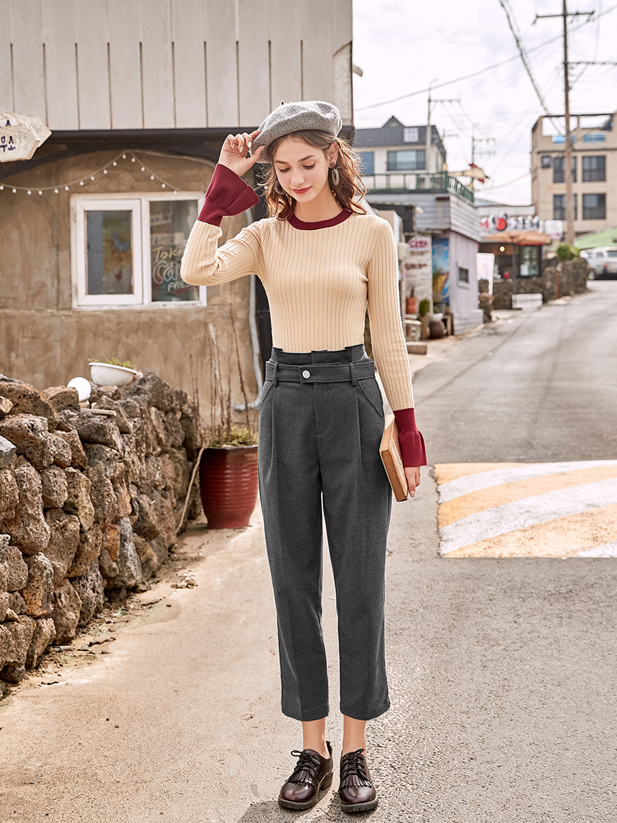 MG小象高腰直筒褲女秋冬2018新款時尚休閑褲寬松學生ulzzang褲子