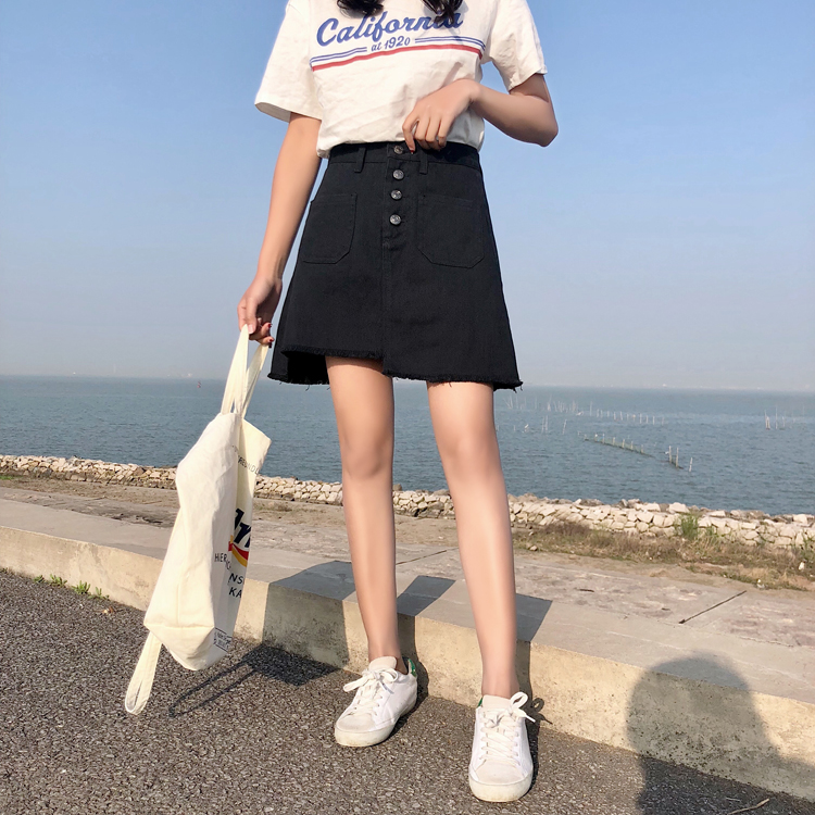 / 夏裝女裝2018新款韓版高腰不規則牛仔裙半身裙顯瘦A字裙短裙學生