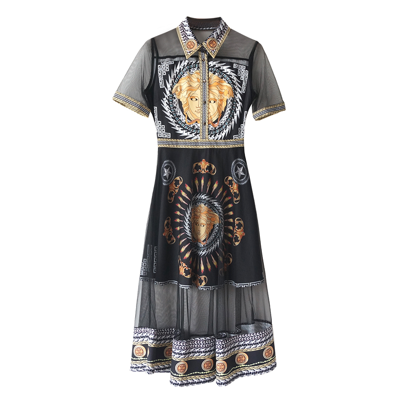 網紅港味襯衫心機裙子網紗時尚設計感連衣裙溫柔風女夏2018新款