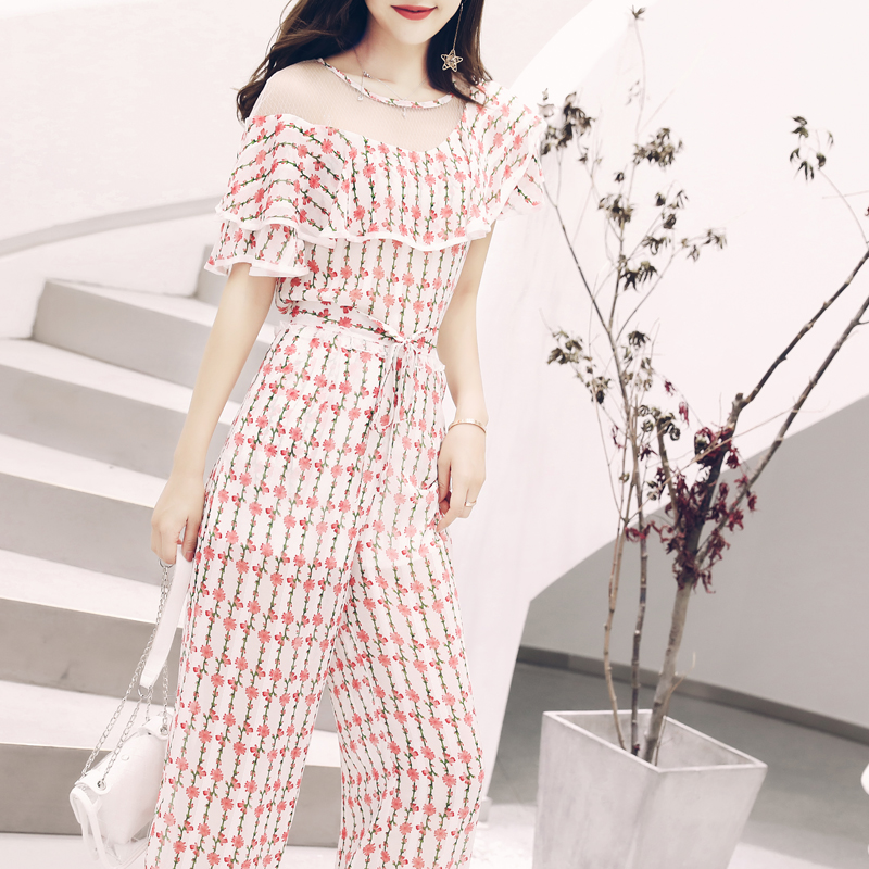 / 時尚夏季網紅短袖夏裝女套裝2018新款名媛印花闊腿長褲氣質兩件套