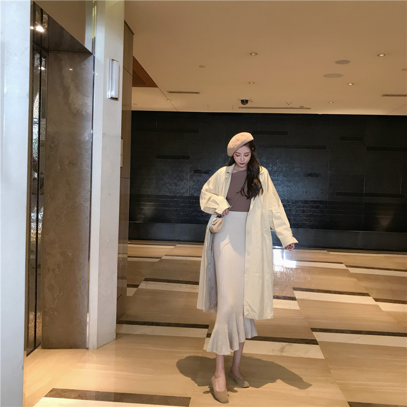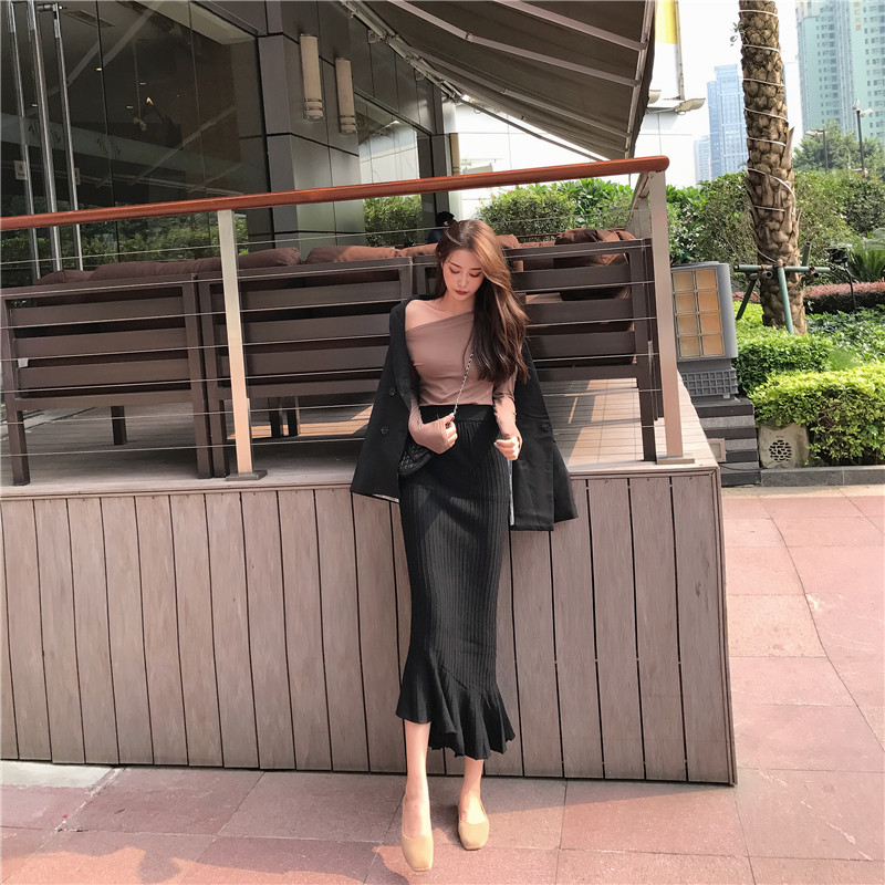 / 2018秋裝新款韓版高腰長裙百搭修身裙子女純色chic斜魚尾半身裙潮