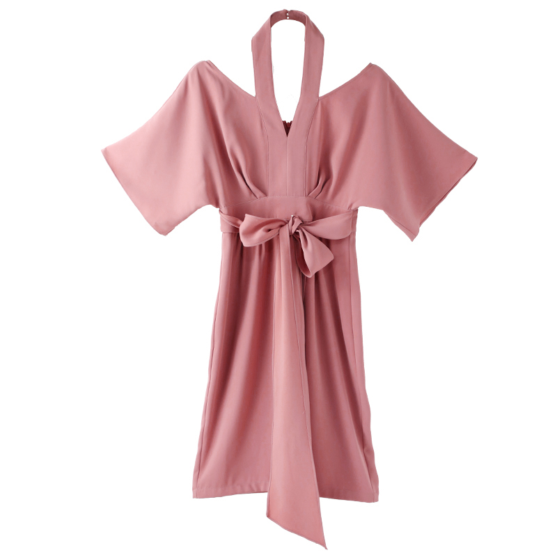 / S秀時尚淑女氣質連衣裙女夏季2018新款名媛英倫風掛脖式中腰裙子