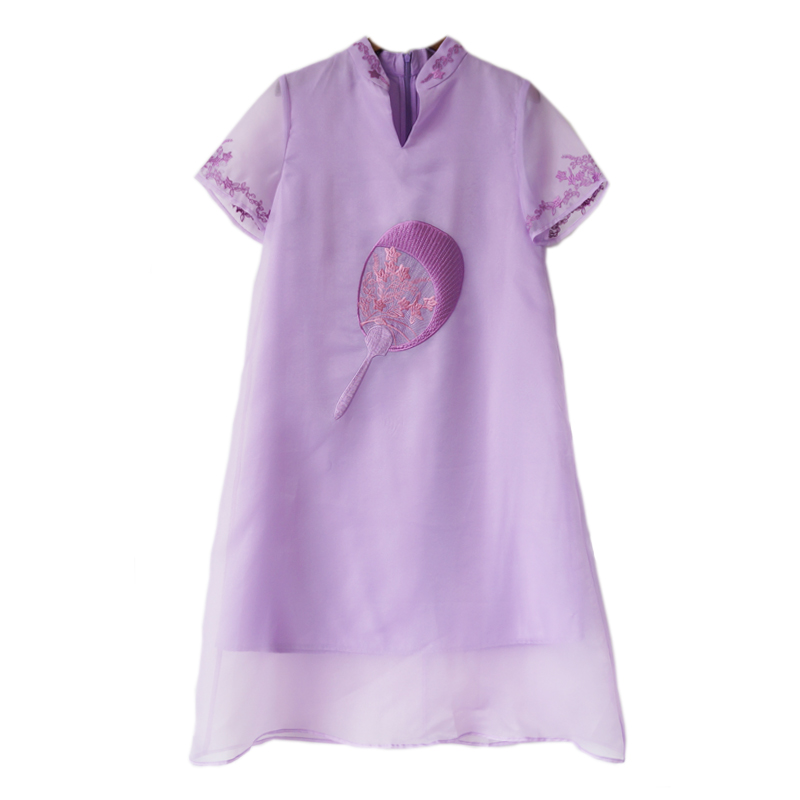 / s秀復古連衣裙新品夏中長款刺繡歐根紗立領民族風寬松顯瘦禮服裙