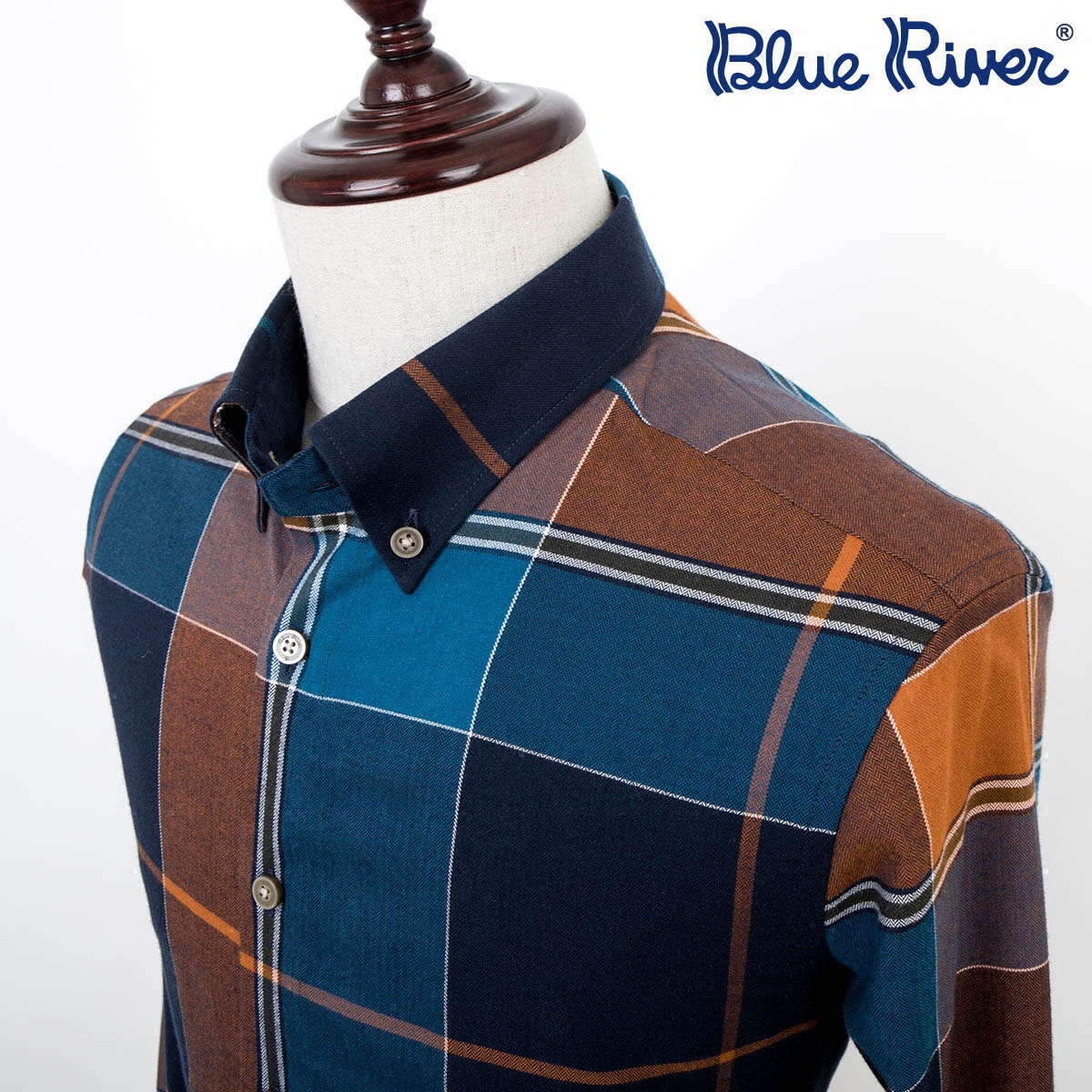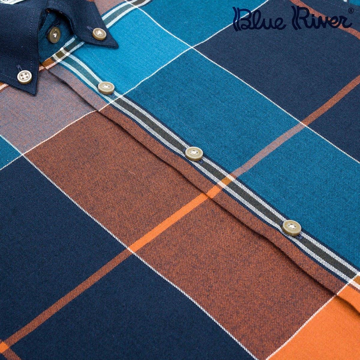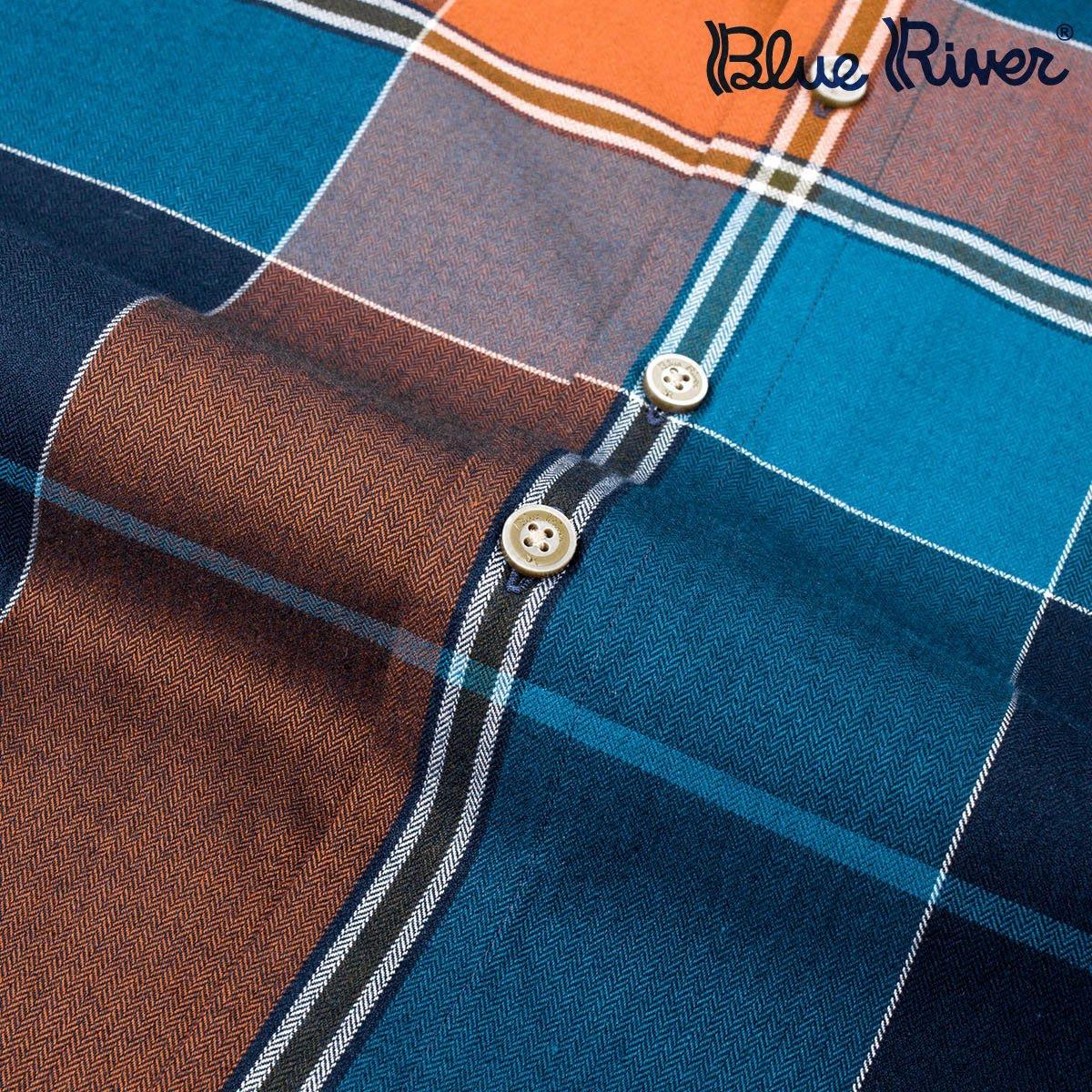 藍河新品襯衫男長袖修身奢華天絲棉大格子秋季保暖舒適柔軟襯衣