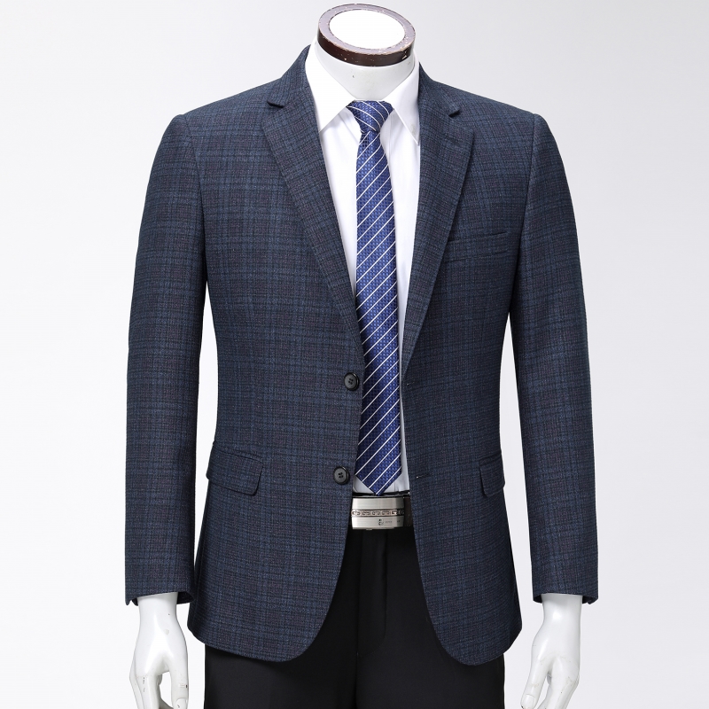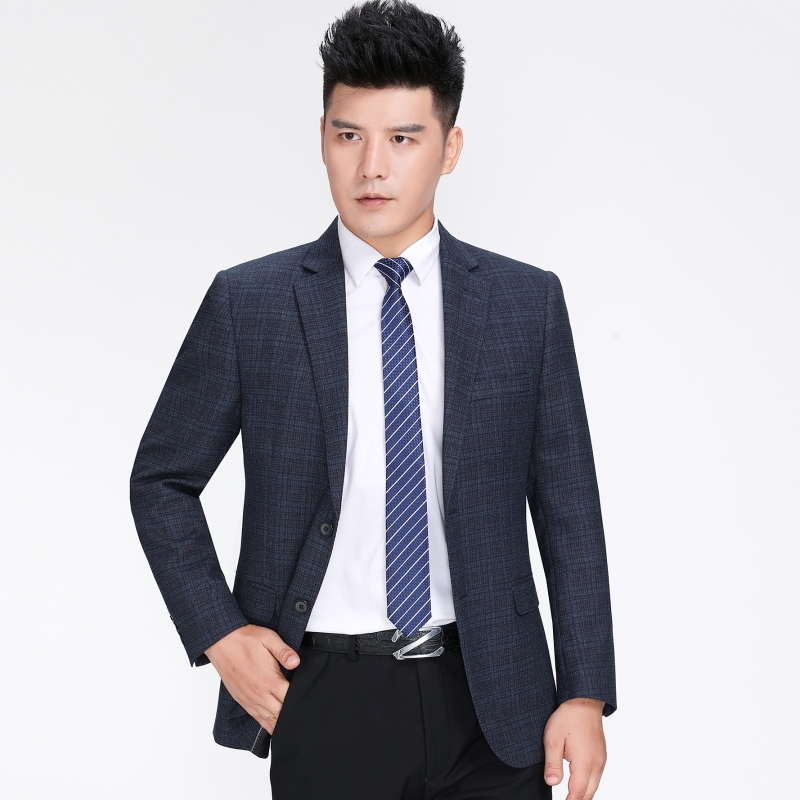秋裝新款品牌中年男士西服商務休閑男裝羊毛格子單件西裝上衣外套