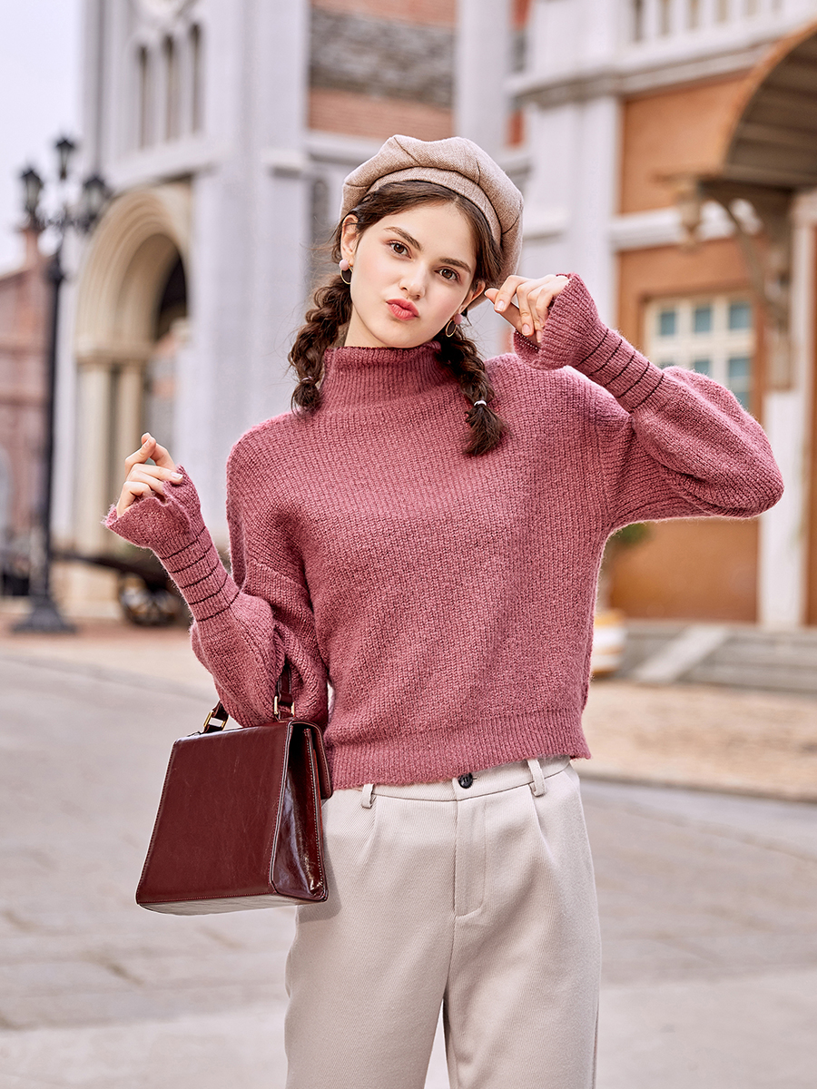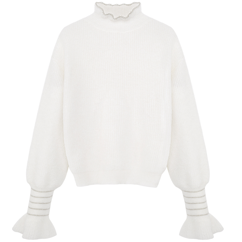 MG小象chic針織衫女長袖秋冬2018新款高領學生毛衣喇叭袖寬松上衣