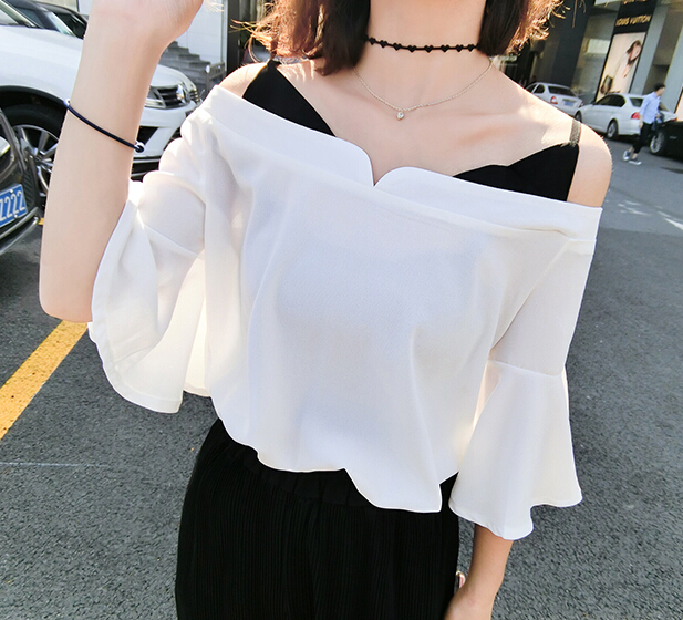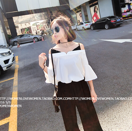 這款露肩襯衫V領設計很性感,讓視覺集中在肩部,