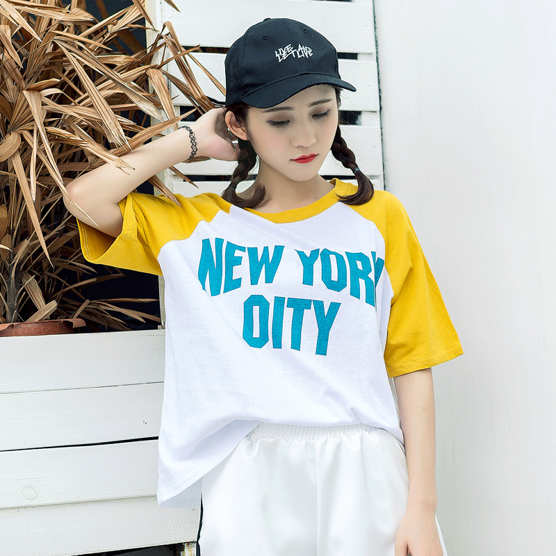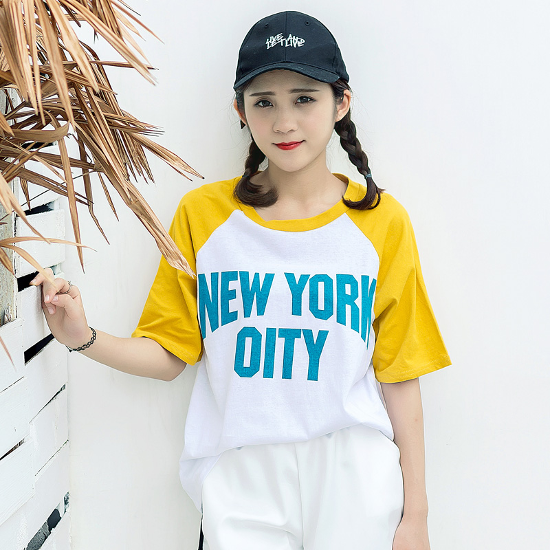夏裝新款女裝韓范字母印花T恤寬松短袖棉質學院風體恤上衣潮