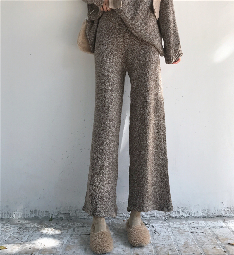 / 復古慵懶寬松加厚保暖高領毛衣高腰顯瘦針織闊腿褲時尚套裝兩件套