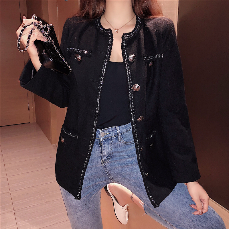 復古氣質百搭新款秋季韓版chic長袖小西裝單排扣時尚顯瘦毛呢外套
