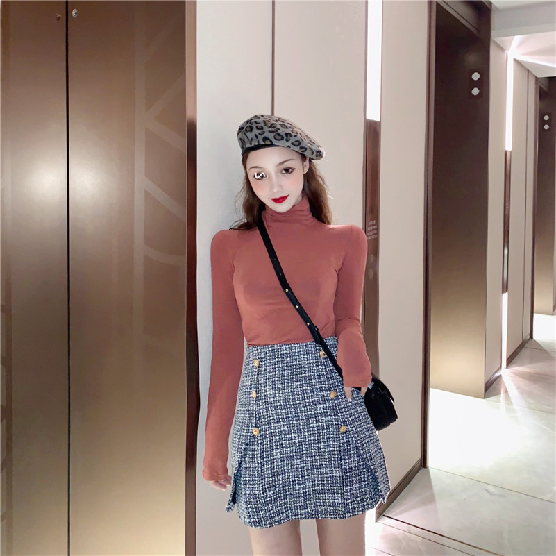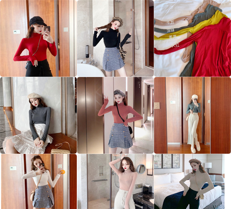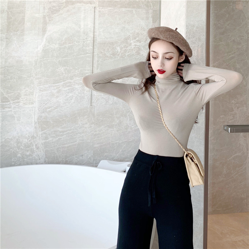 2018秋裝新款彈力修身長袖打底衫女chicT恤堆堆領內搭初秋上衣潮