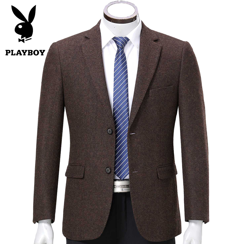 / 冬裝花花公子品牌中年男士西服商務休閑男裝羊毛厚款單件西裝外套