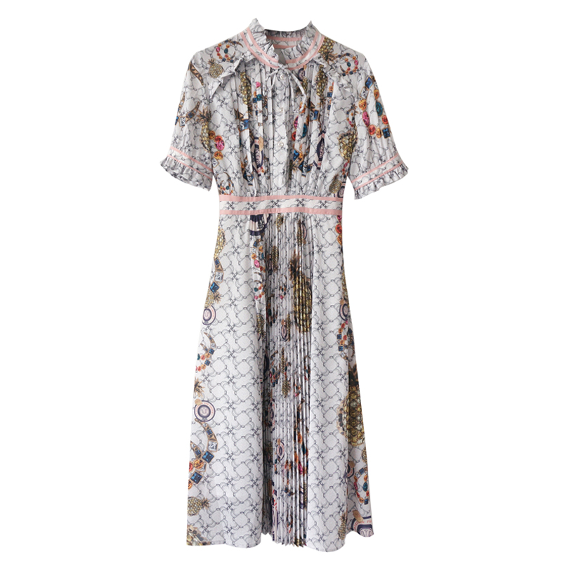 / S秀歐洲站百褶顯瘦減齡復古短袖高腰溫柔連衣裙中長款2018新款