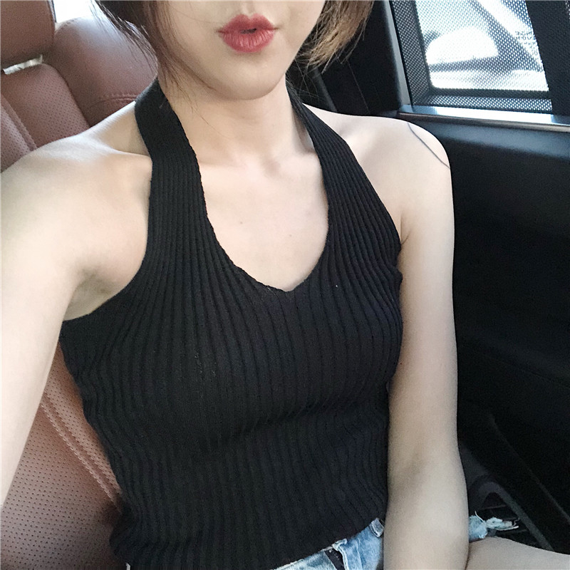 吊帶女夏2018新款修身無袖外穿背心百搭港味復古chic針織掛脖上衣