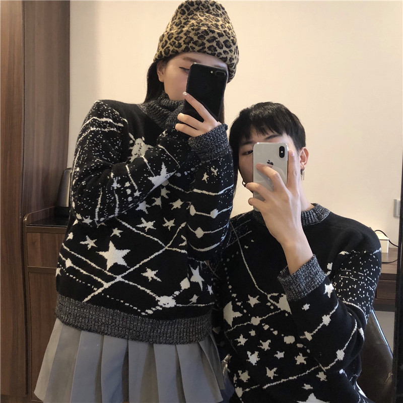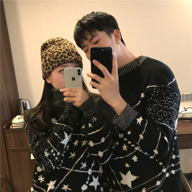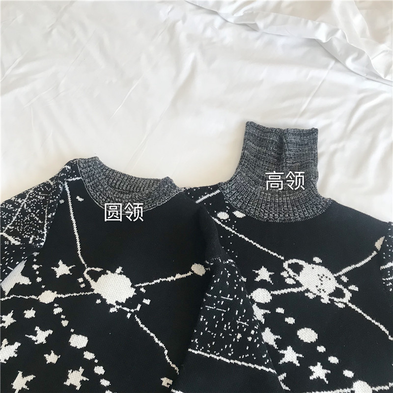 / 冬季新款韓版寬松宇宙星球針織衫情侶裝加厚套頭毛衣