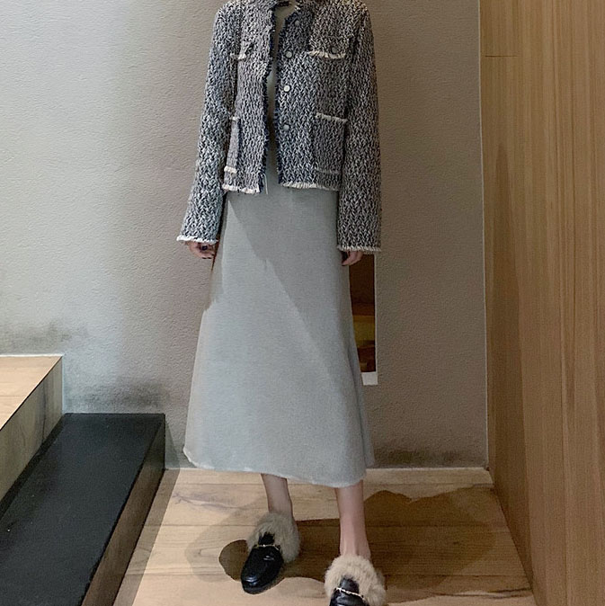 馬海毛網紅毛衣女2018新款針織開衫外套冷淡風針織吊帶連衣裙套裝