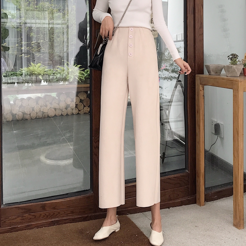 / 港味復古chic高腰休閑褲九分褲百搭秋季新款時尚闊腿褲直筒褲女潮