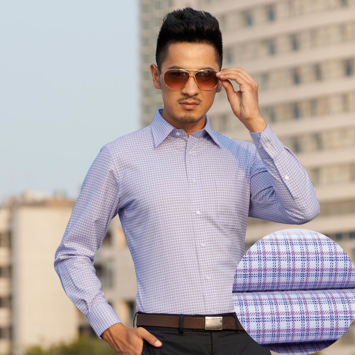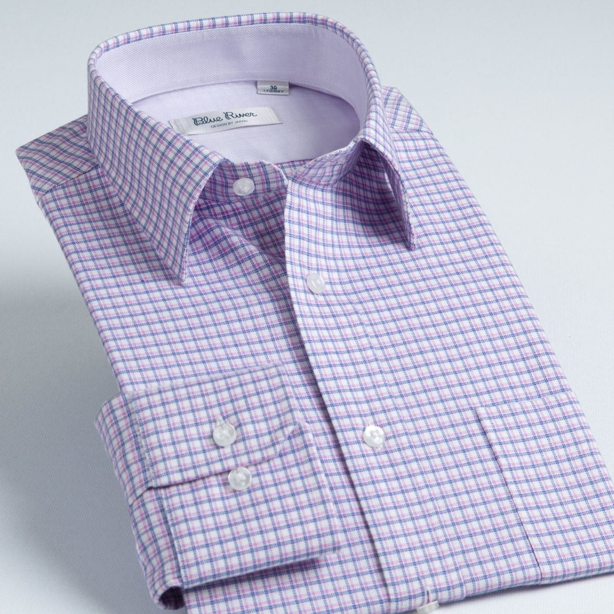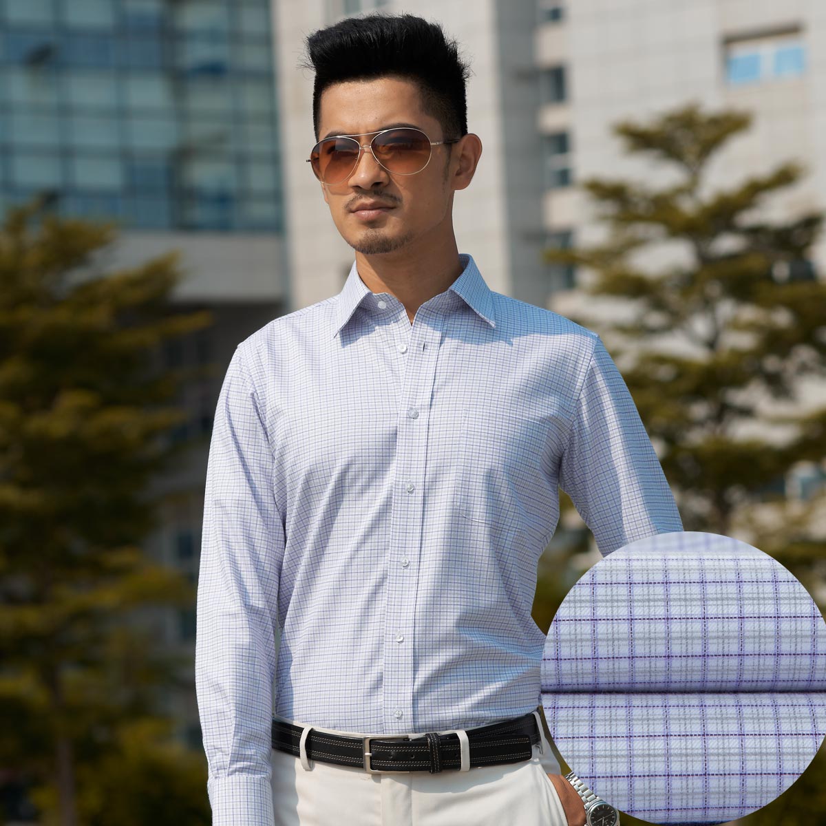/ 襯衫 男 長袖 格紋 正裝藍河格子商務休閑型男裝襯衣新款秋裝