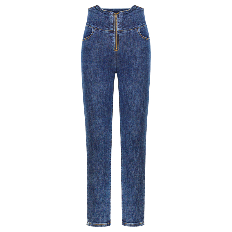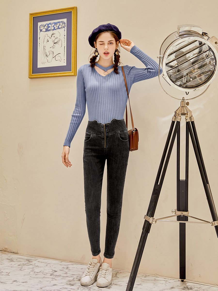 MG小象緊身牛仔褲女秋高腰顯瘦chic小腳褲2018新款復古港味風褲子