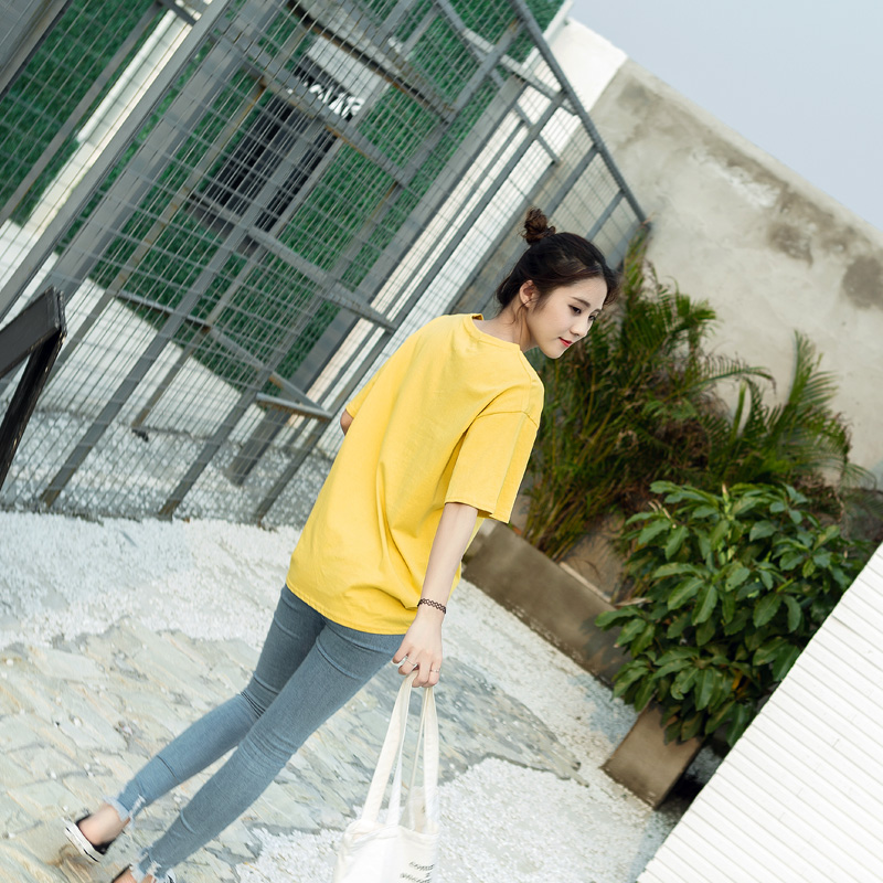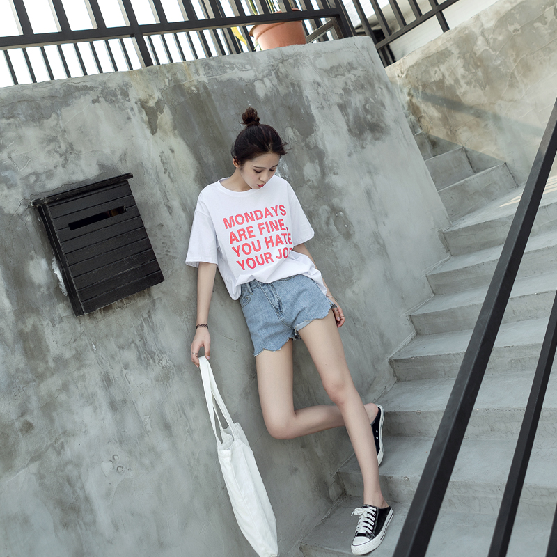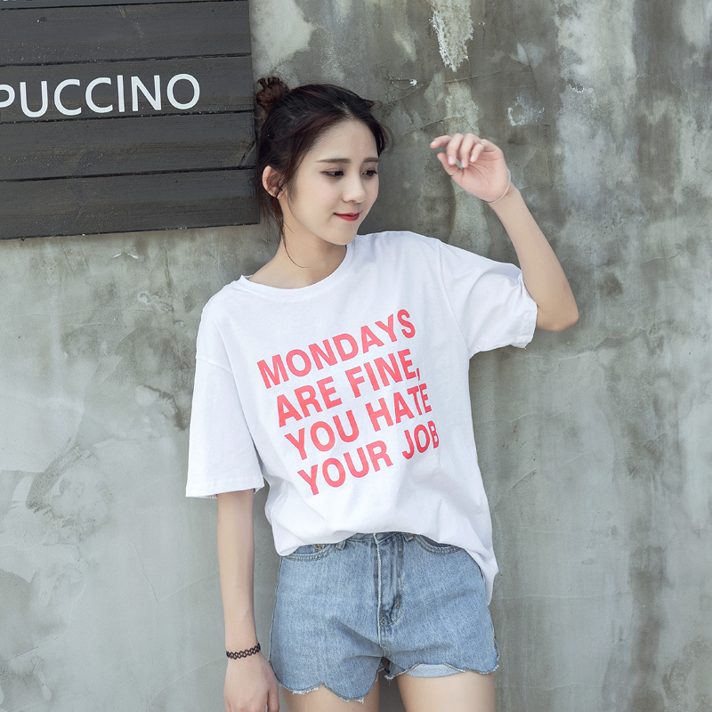 夏裝新款女裝t恤女短袖休閑圓領寬松字母印花學生上衣打底衫