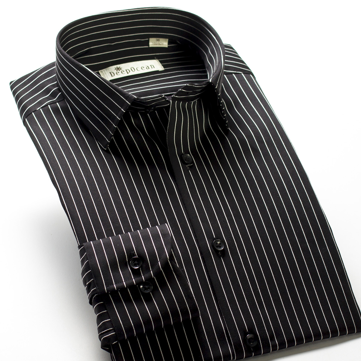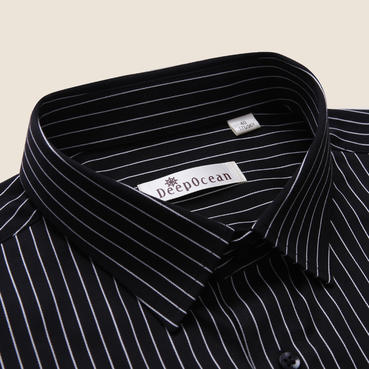 / 深海男士男裝長袖襯衫絲光棉白色黑色條紋商務純棉修身免燙秋裝