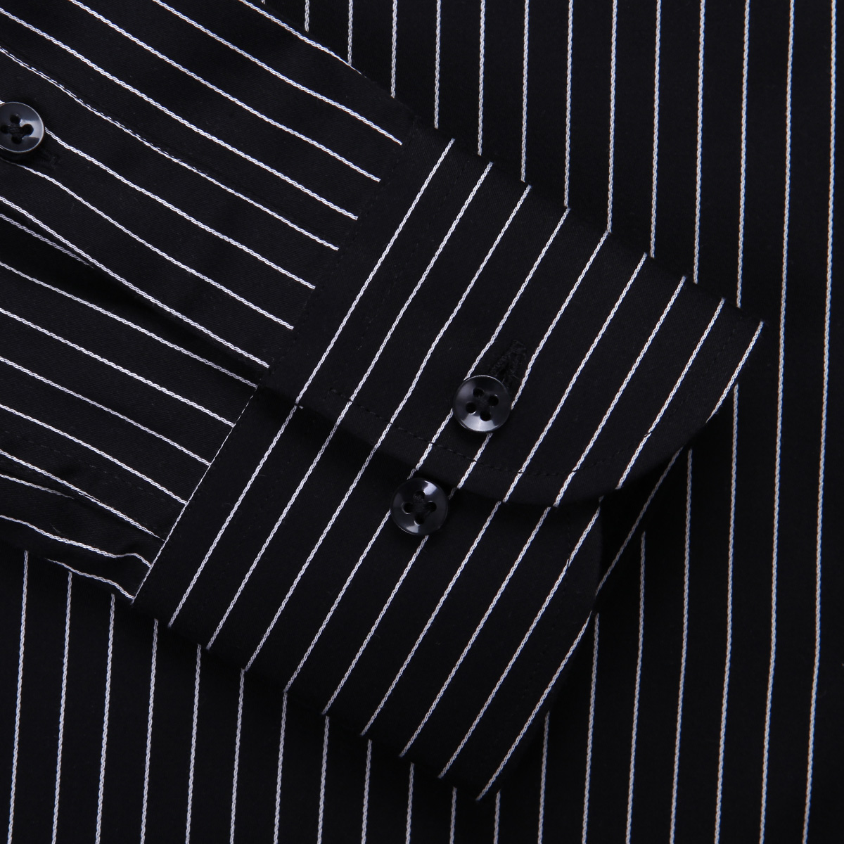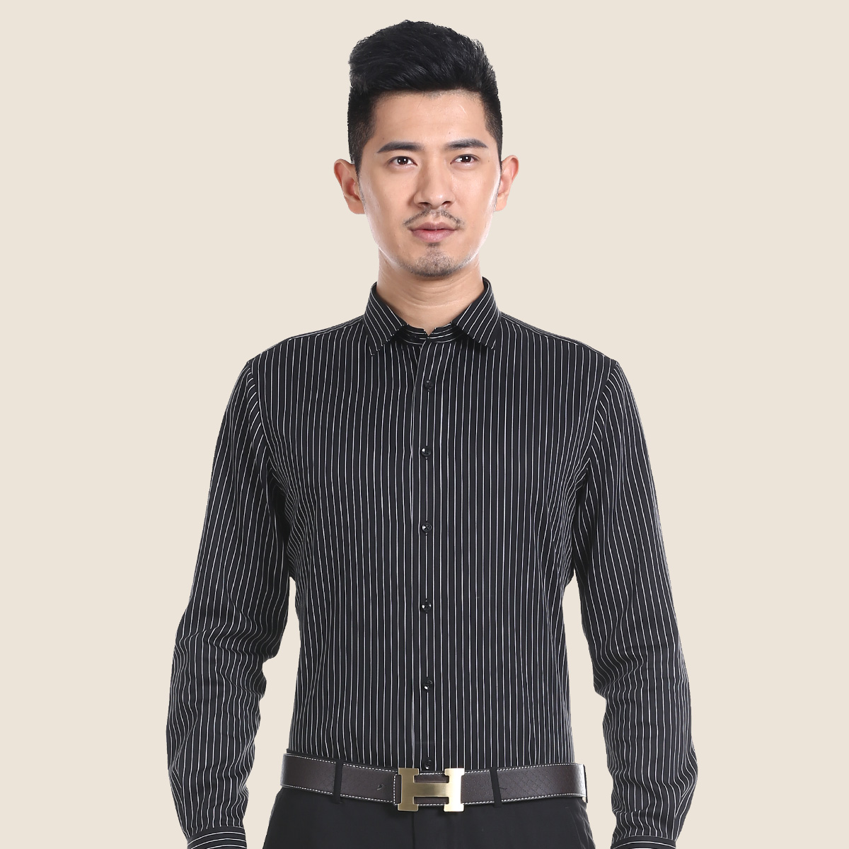 深海男士男裝長袖襯衫絲光棉白色黑色條紋商務純棉修身免燙秋裝