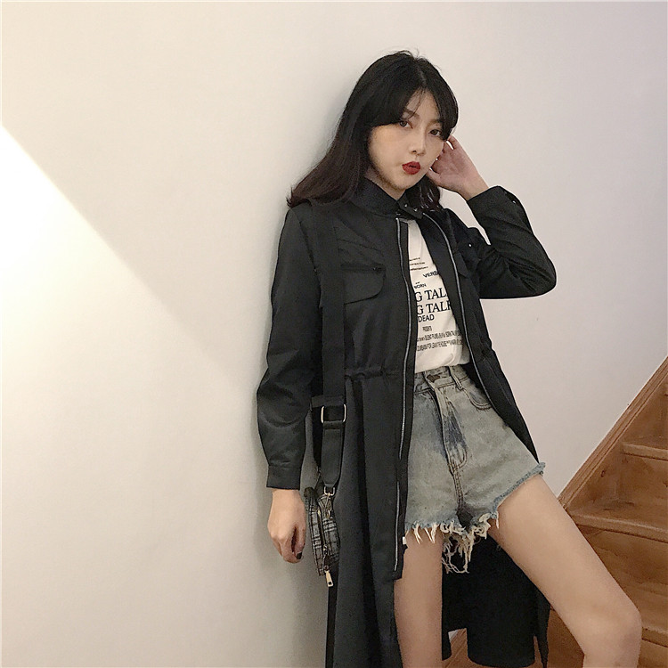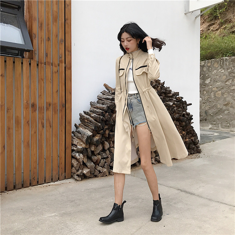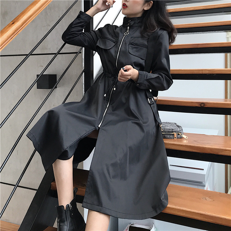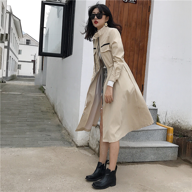 / 港味2018秋新款時尚修身顯瘦風衣中長款拉鏈系帶收腰外套連衣裙潮