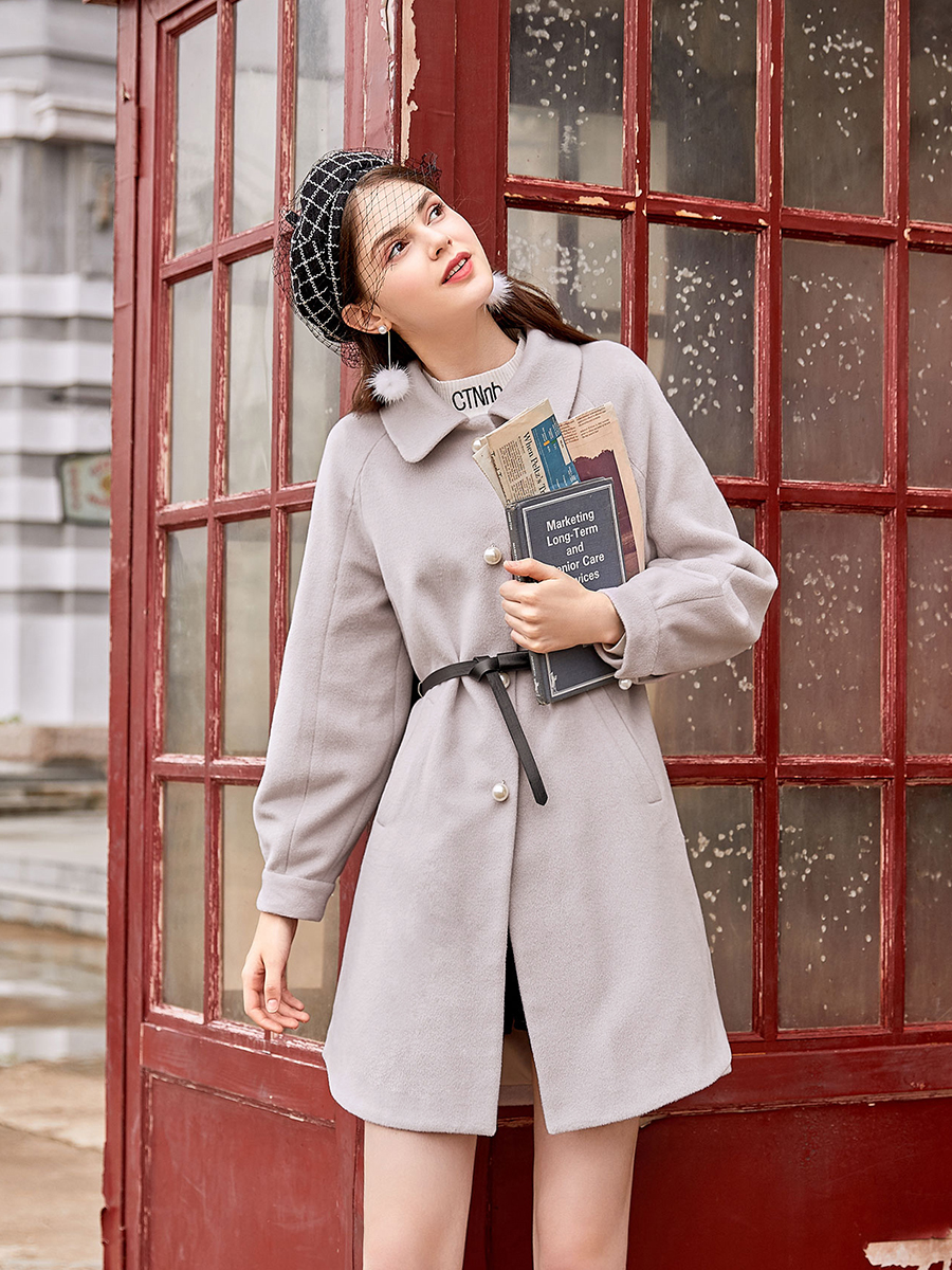 MG小象中長款毛呢大衣女冬裝2018新款寬松學生甜美收腰呢子外套潮