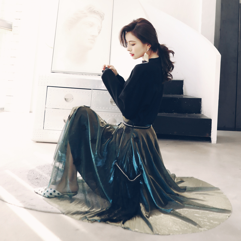 / 2018秋冬裝女新款韓版港味氣質長袖毛衣針織衫兩件套裝網紗連衣裙