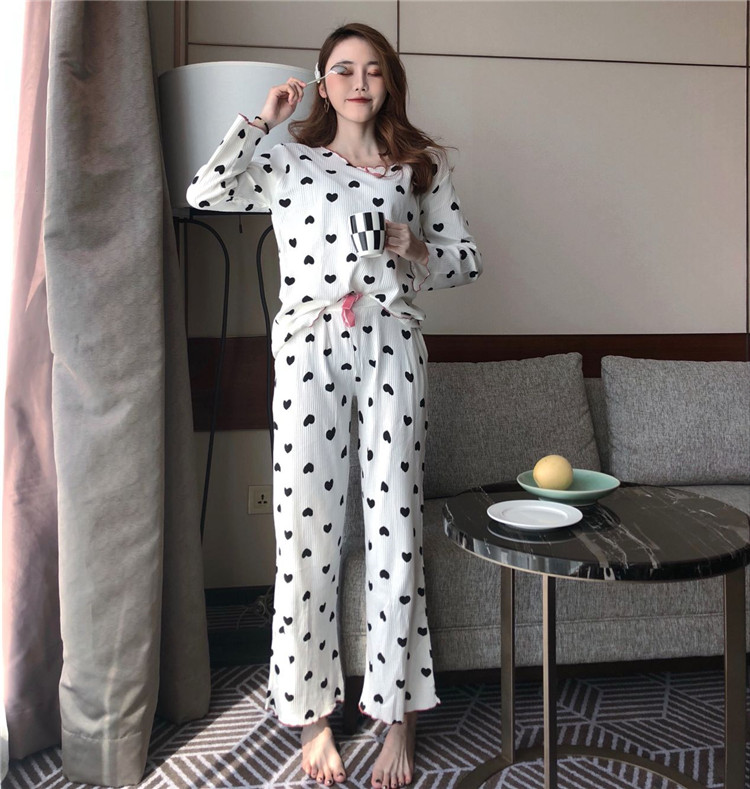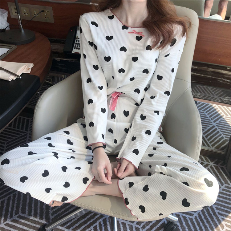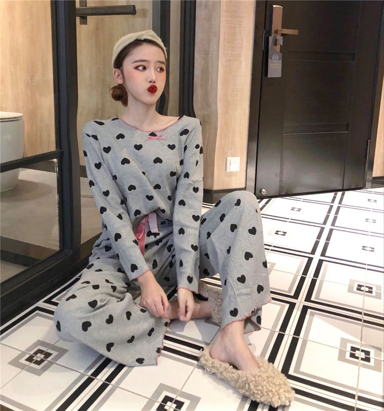 2018秋裝新款韓版舒適甜美長袖寬松睡衣愛心少女可愛家居服套裝潮
