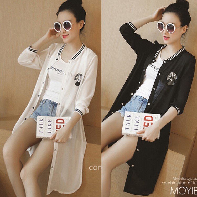 / 防曬衣夏天超薄款修身外套雪紡衫百搭大碼女裝夏季中長款外搭開衫