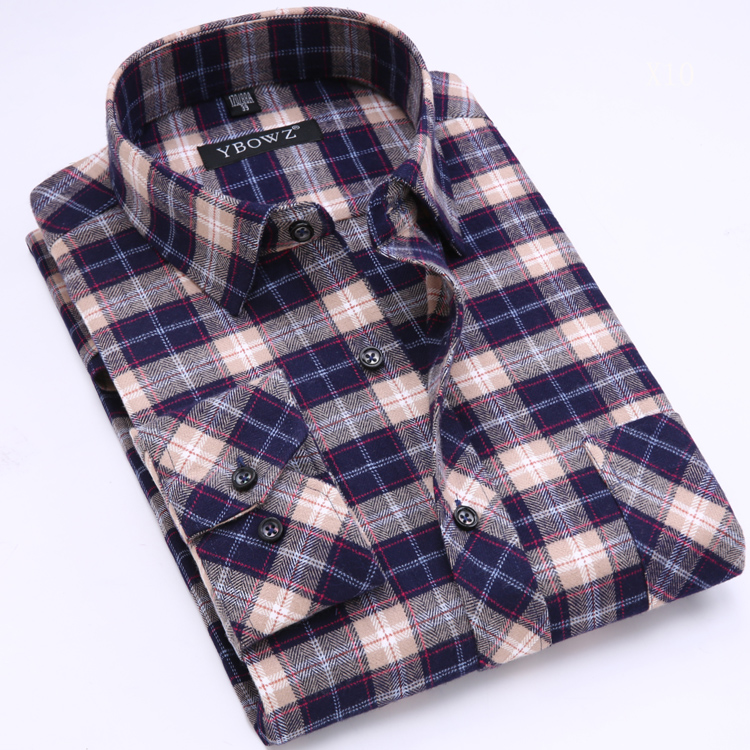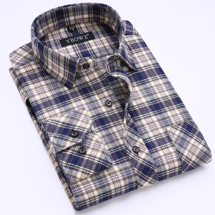 / 春款長袖全棉格子襯衫男士純棉休閑免燙中年磨毛格子襯衣爸爸裝男