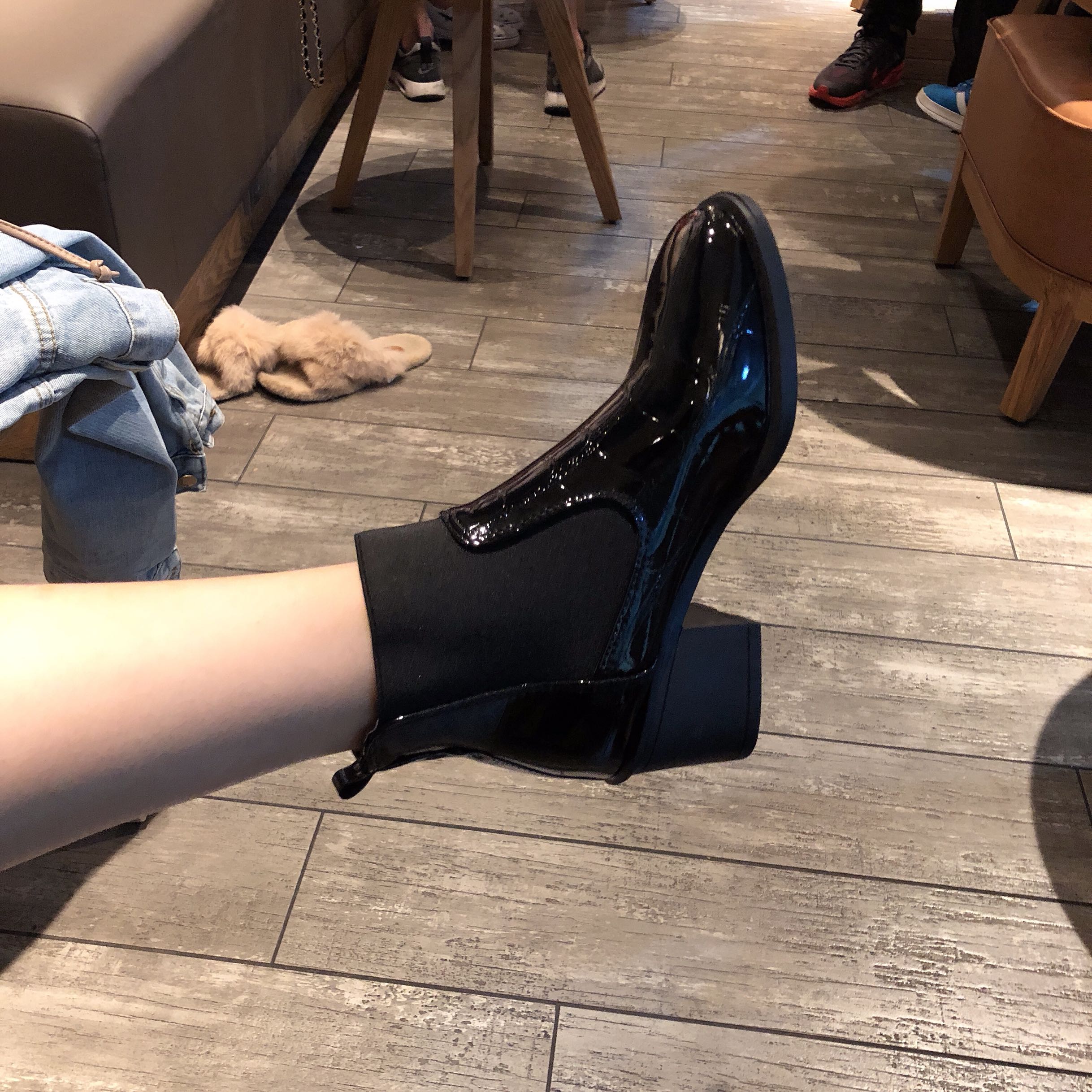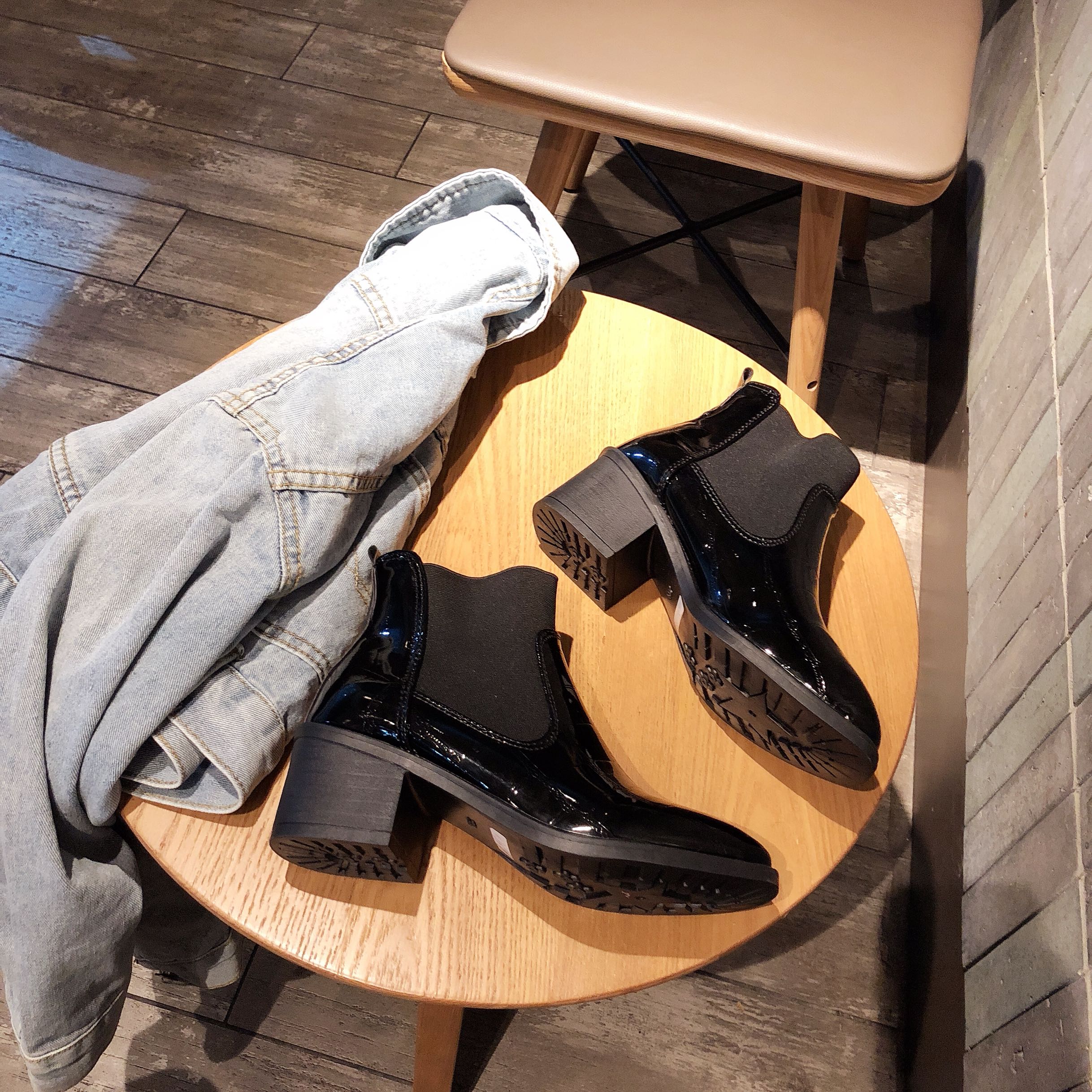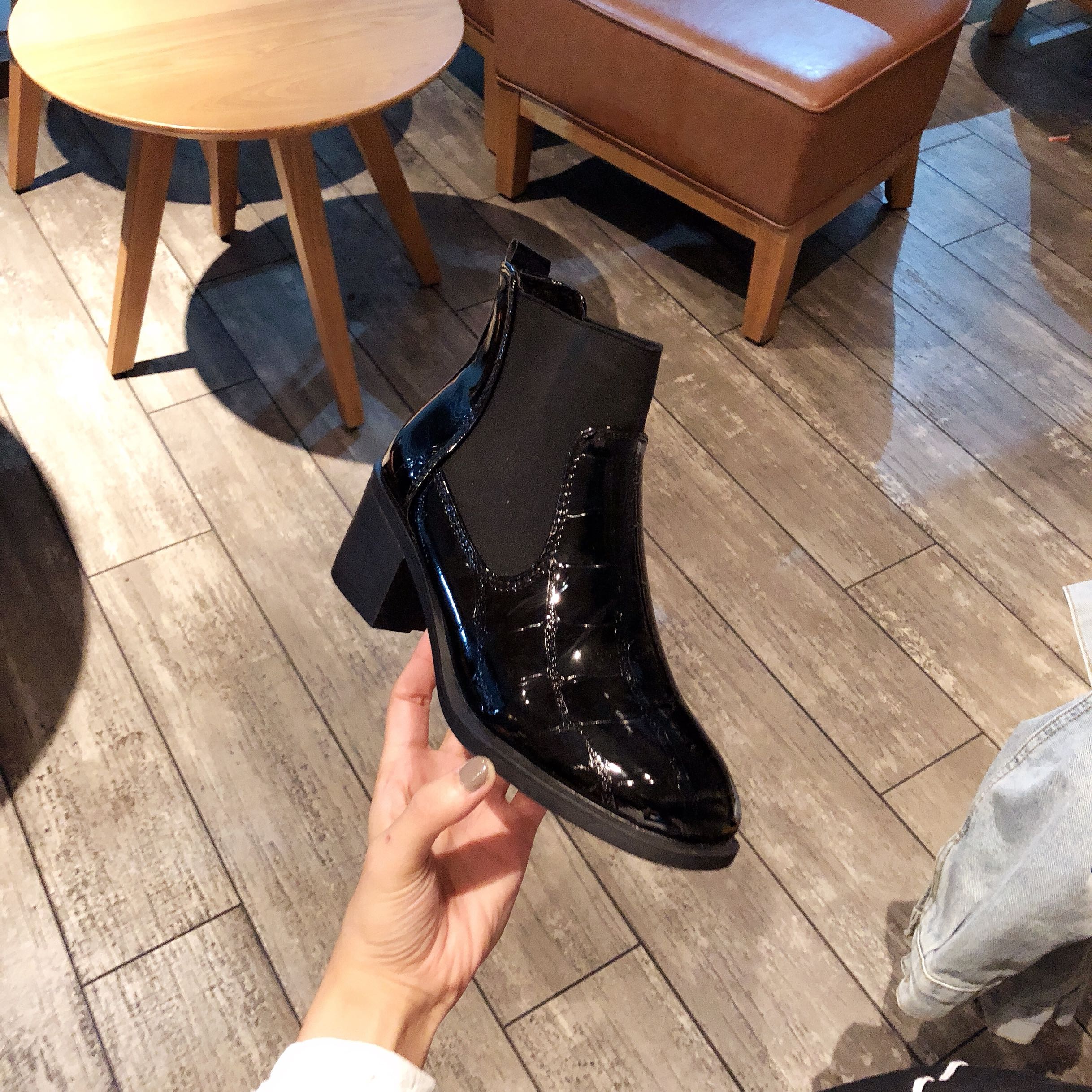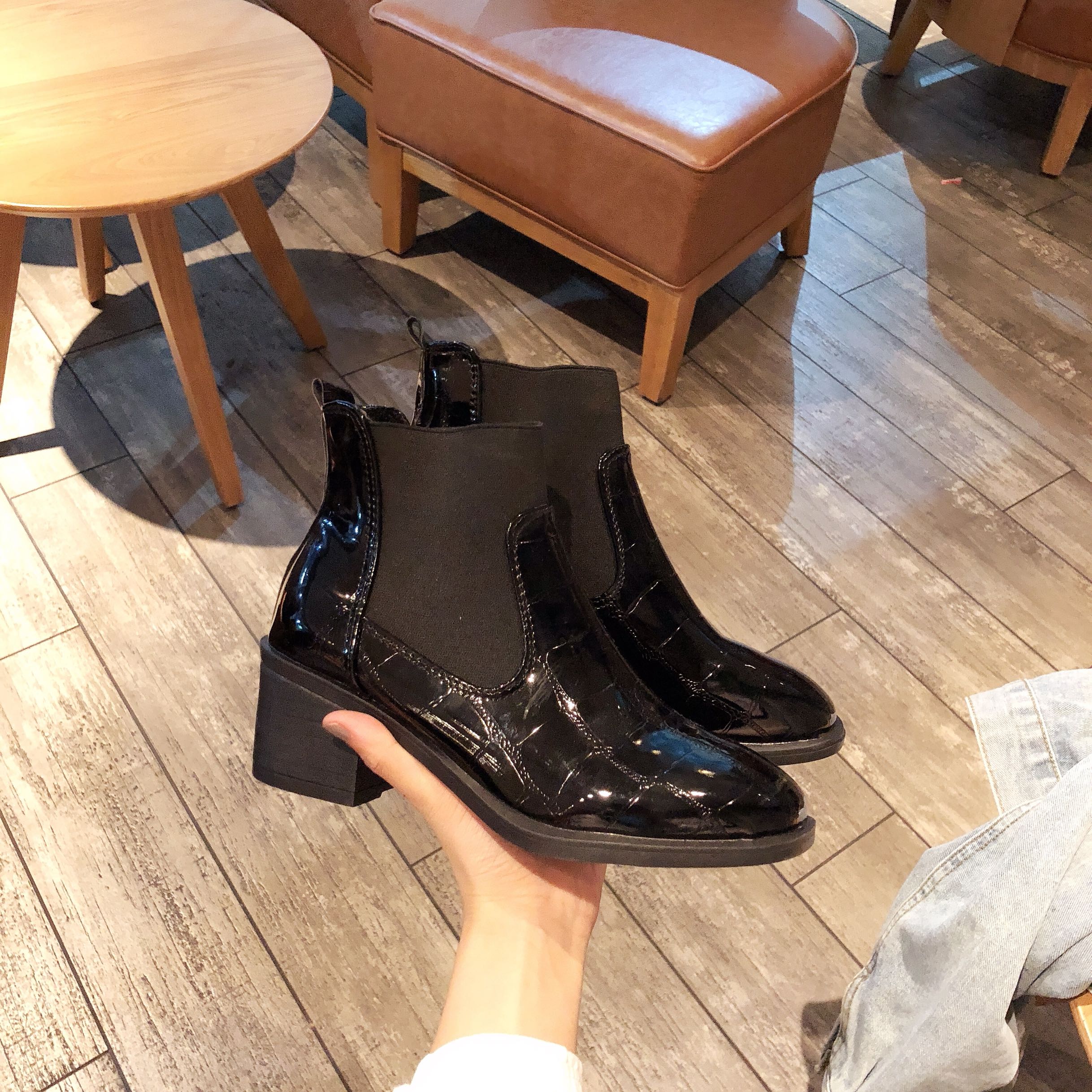 2018冬季新款方頭漆皮切爾西靴高跟短靴粗跟馬丁靴歐美時尚學生靴