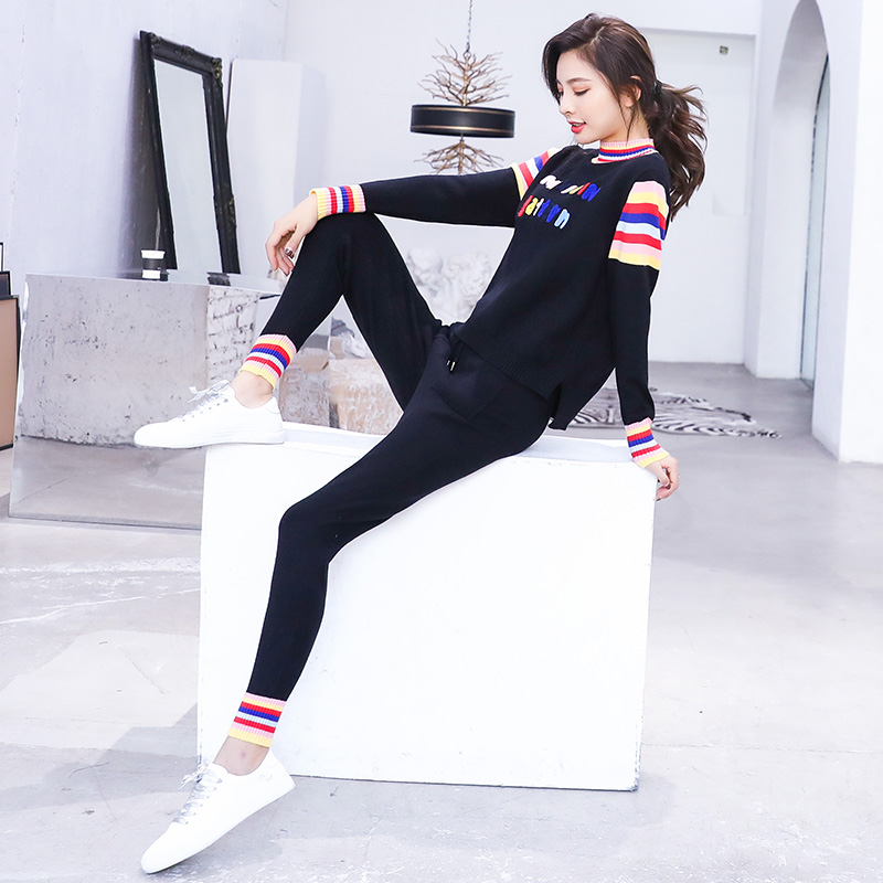 / 女士秋冬季針織長袖運動服休閑套裝女秋裝時尚兩件套2018新款韓版
