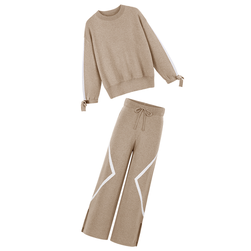 MG小象慵懶風套頭毛衣女2018新款寬松高腰闊腿褲子圓領chic上衣潮