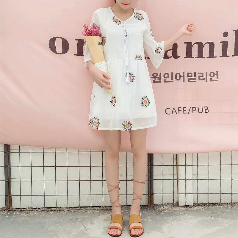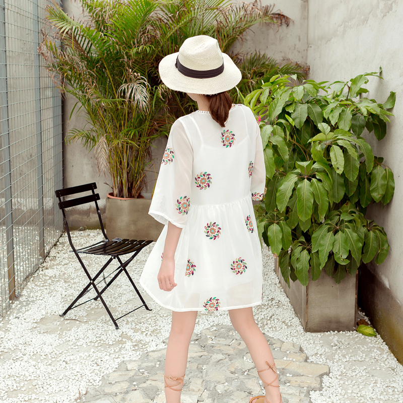 刺繡雪紡連衣裙女春夏裝新款韓版中長款寬松小清新打底裙子潮