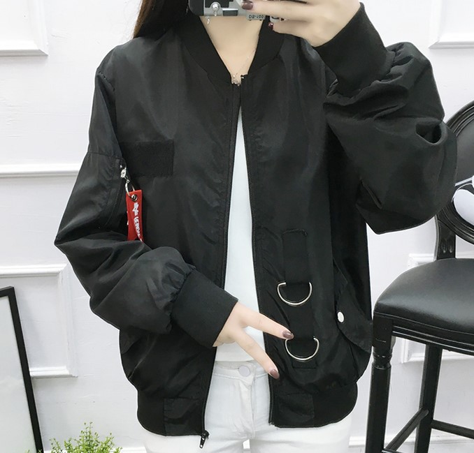 2017秋季新款韓版學生字母織帶寬松外套女原宿風學生拼色BF棒球服