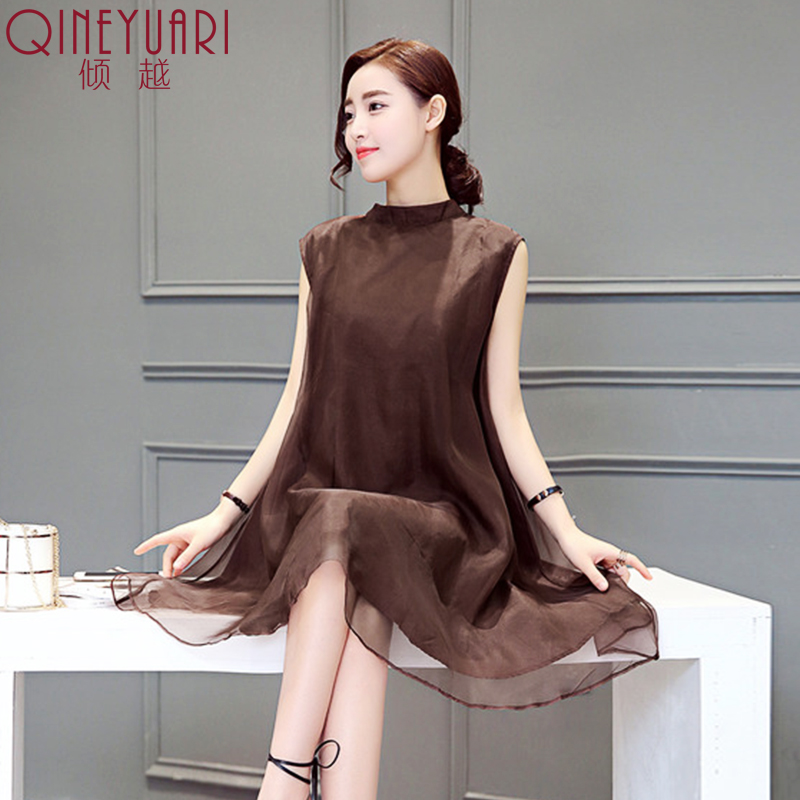 2017夏季新款氣質女裝OL時尚顯瘦無袖雪紡連衣裙女中長款A字裙子