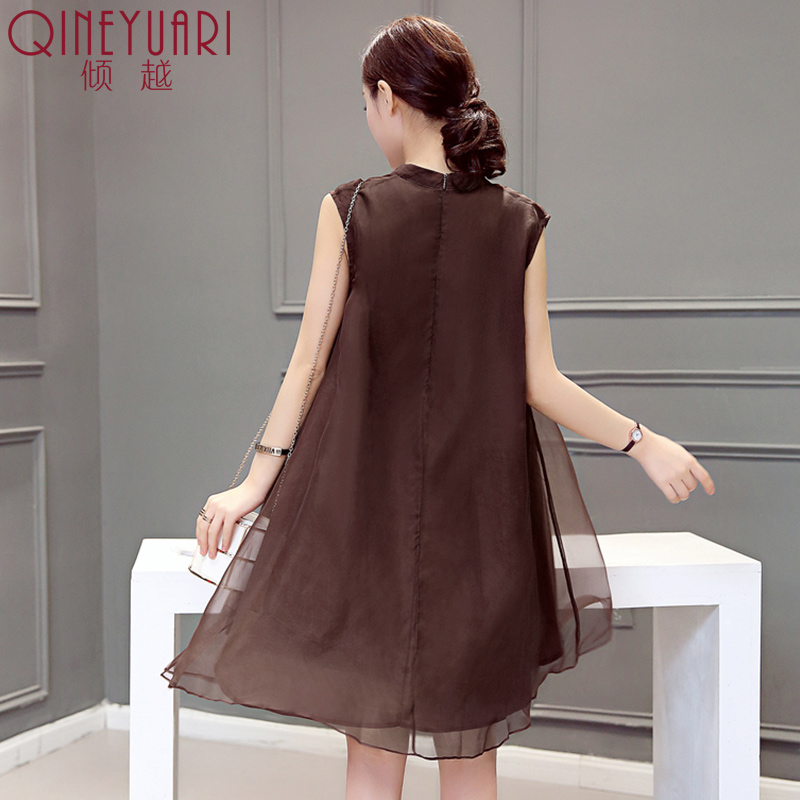 / 2017夏季新款氣質女裝OL時尚顯瘦無袖雪紡連衣裙女中長款A字裙子