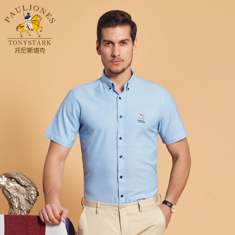 / 夏季男士全棉短袖襯衫純白色扣領純棉牛津紡商務休閑中年半袖襯衣