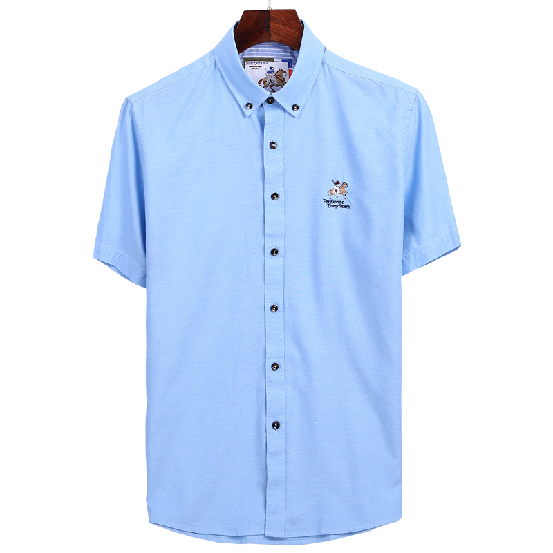 夏季男士全棉短袖襯衫純白色扣領純棉牛津紡商務休閑中年半袖襯衣