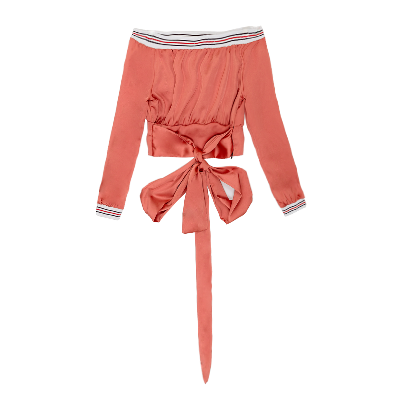 領口拼接撞色松緊條帶,可以斜肩/一字肩 下擺收腰處理,